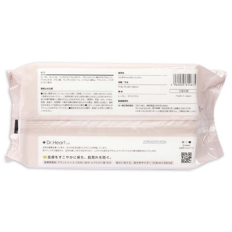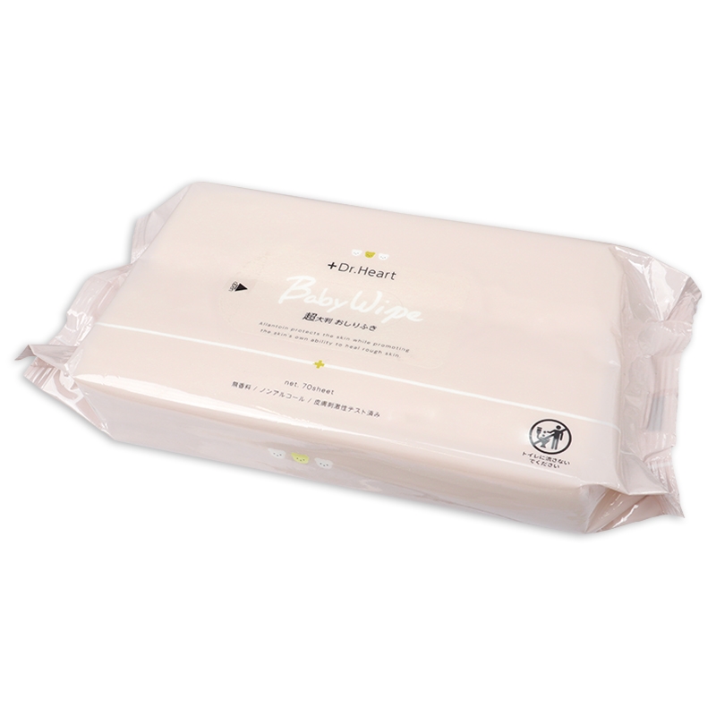 ○アラントイン・GK2・ヒアルロン酸配合 ○何回も折って使える大判シート(180×200mm) ○皮膚を健やかに保ち、肌荒れを防ぐ ○フタ無タイプ ○新生児から使える ○赤ちゃんの全身拭ける体ふきとしても ○ドクターハート初めての大判タイプ