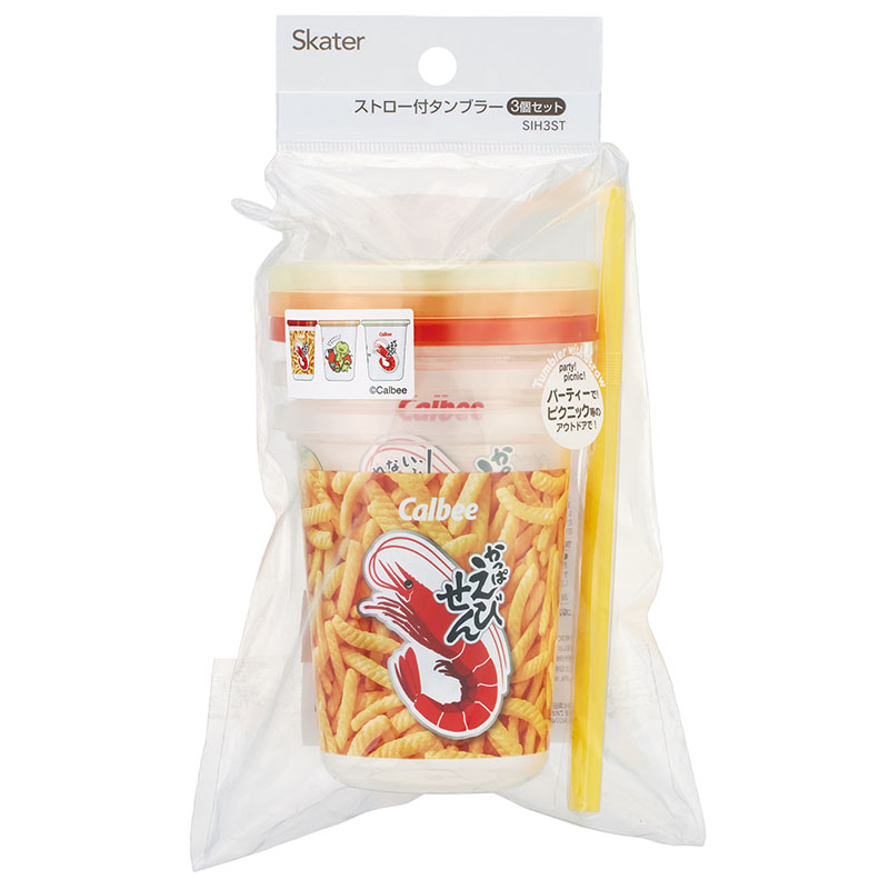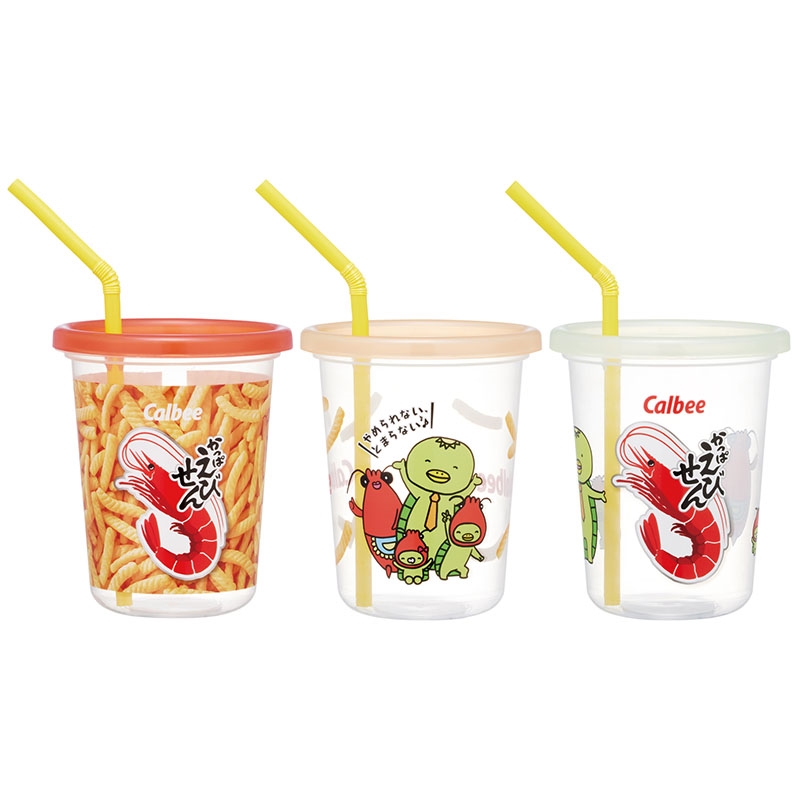 ●素材:ポリプロピレン ●サイズ:直径9×高さ10.6cm ●セット内容:タンブラー3個・フタ3個・ストロー3個 (c) Calbee