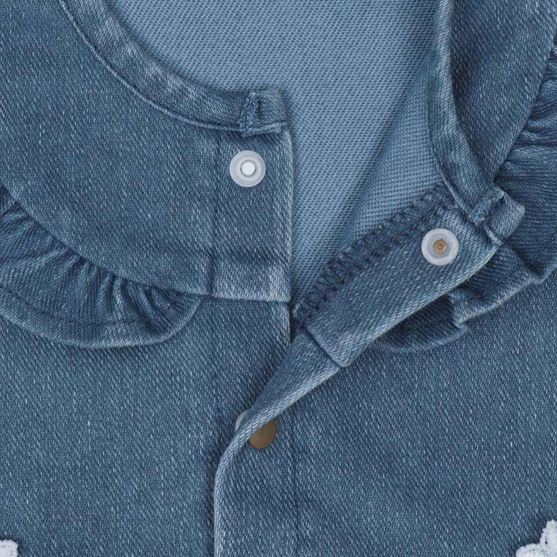 部屋着だけでなくこれ1枚でお出掛けにもなるおしゃれロンパスです。 流行りとらわれず何でも合わせられるシンプルデザインです。 花モチーフが付いていて可愛さがさ引き立たせています。 股下が着脱しやすいスナップボタンになってるので股下からかぶればお着替えやオムツ替えも楽々です。 厚すぎず薄すぎず春秋に適したストレッチのある生地を使用しております。 着用の際、窮屈感がなくお子様に負担をかけず動きやすいです。