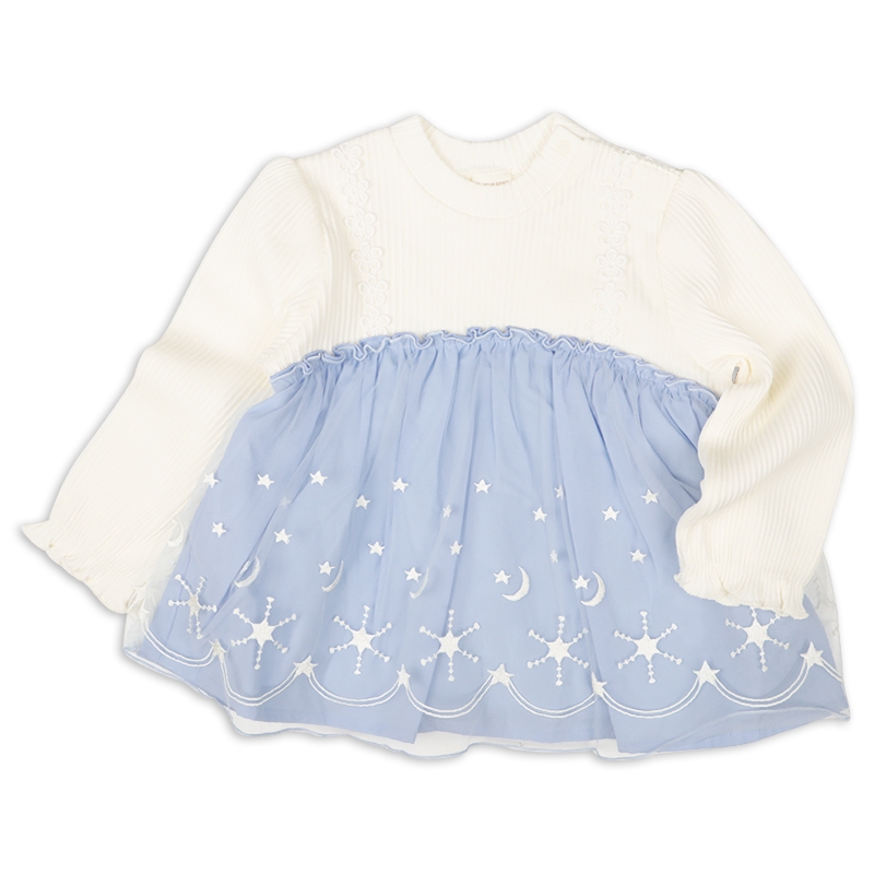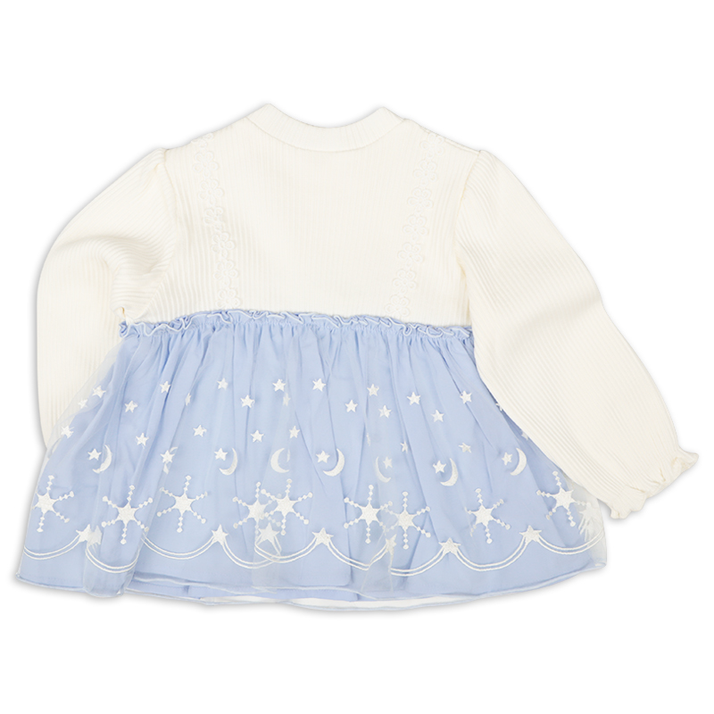 ●素材=本体 綿100% チュールレース 基布 ナイロン100% 刺繍糸 ポリエステル100% 無地 綿100% ●サイズ(約・cm)= 80(身丈34・身幅28・袖丈28) 90(身丈37・身幅29・袖丈31.5) 95(身丈38.5・身幅30・袖丈33)