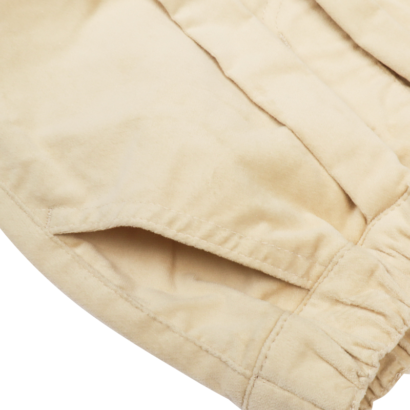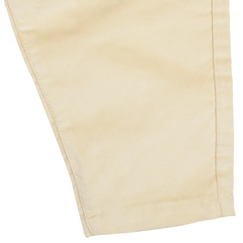 フロントにタックが入っているため、太もも辺りはゆったりしており動きやすいシルエットです。きれい目スタイル、カジュアルスタイルどちらにも着こなせるアイテム。素材は起毛感のある別珍と、定番のストレッチデニムとの2種類あります。
