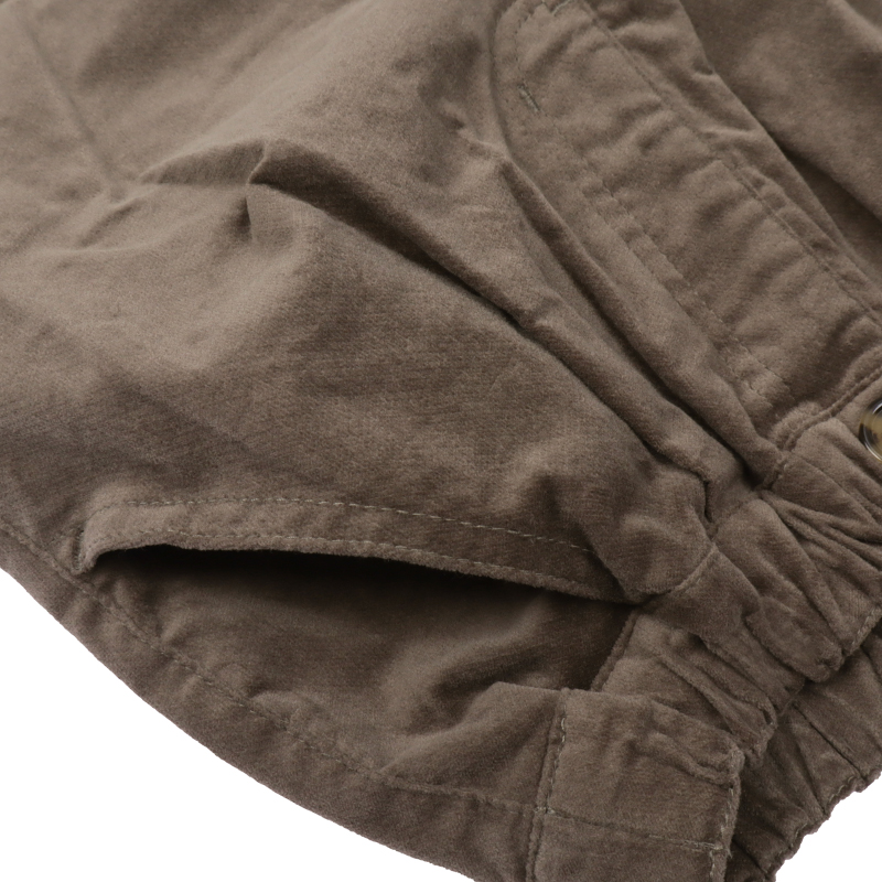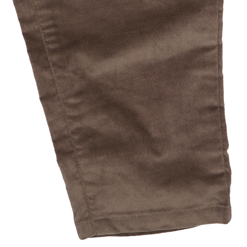 フロントにタックが入っているため、太もも辺りはゆったりしており動きやすいシルエットです。きれい目スタイル、カジュアルスタイルどちらにも着こなせるアイテム。素材は起毛感のある別珍と、定番のストレッチデニムとの2種類あります。