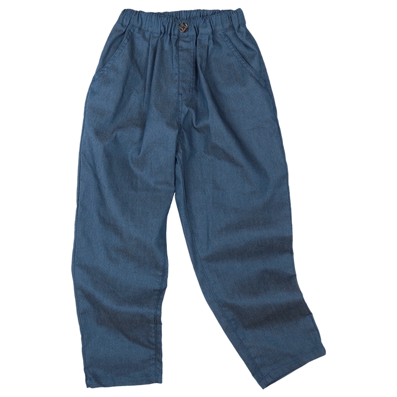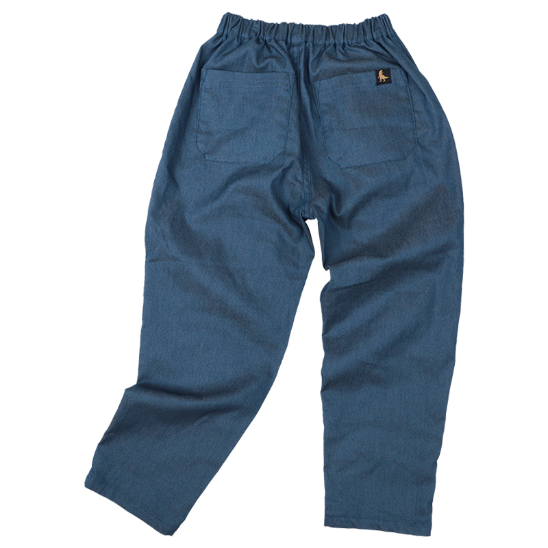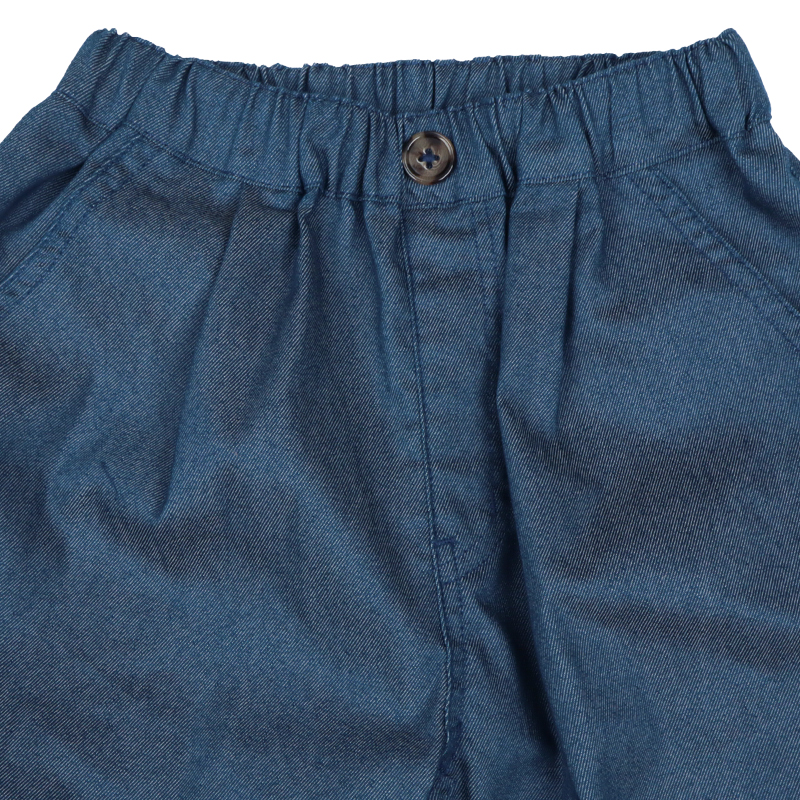 ●素材=デニム 綿70% ポリエステル25% ポリウレタン2% サイズ 100/110/120 ウエスト伸ばし寸 36/38/40 パンツ総丈57/64/71 ヒップ巾 36.5/38.5/40.5