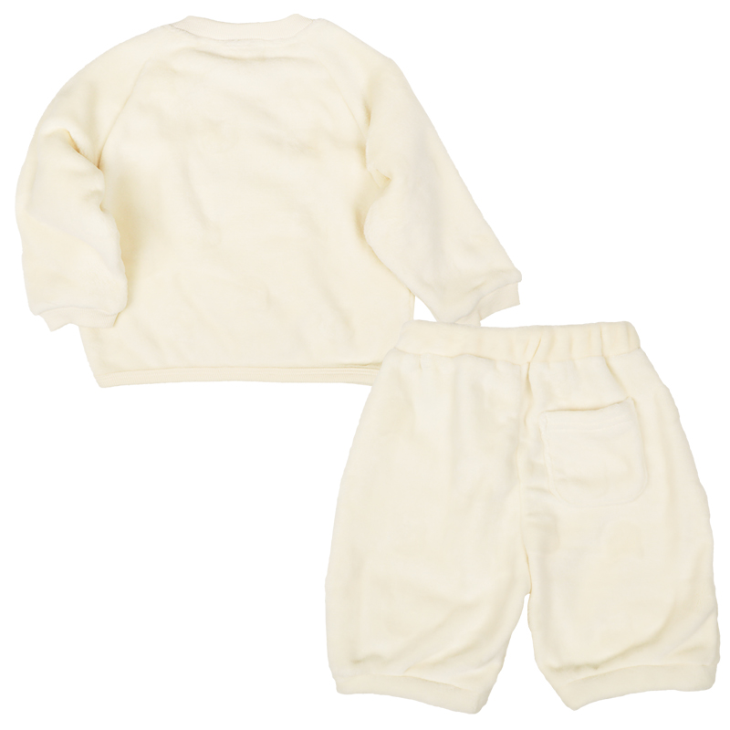 ●素材=[上衣]本体 ポリエステル100% リブ部分 綿58% ポリエステル38% ポリウレタン4% [パンツ]本体 ポリエステル 100% ●サイズ=70/80/90/95 トップス 身丈 29.5/32/35/36.5 身巾 34/35/36/37 袖丈 37.5/31.5/35.5/37.5 パンツ ウエスト伸ばし寸 32/33/34/35 パンツ総丈 28.5/30.5/32/33.5
