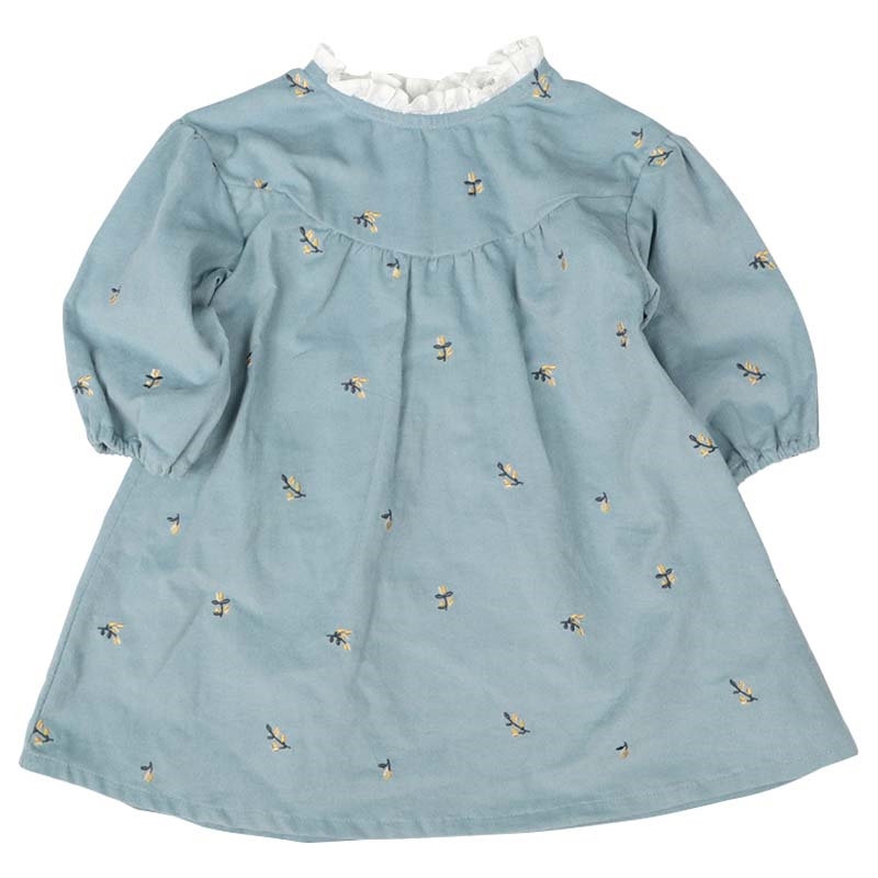 シャツコールに総柄刺しゅうをほどこしたお上品な雰囲気のワンピースです。 胸下の切替え部分にはギャザーも入っておりふんわりとしたシルエット。 1枚でとても華やかな印象です。普段使いはもちろんお出かけやフォーマルな場でも使える1枚です。