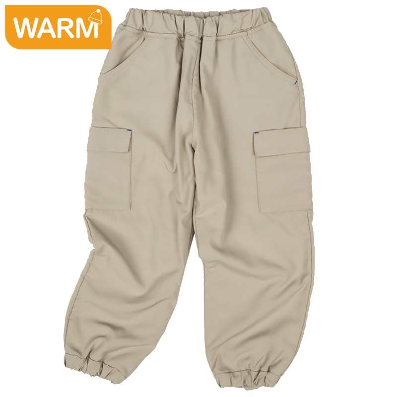 表地はポリエステルタフタ、裏地は起毛感のあるマイクロフリースの2枚生地で仕立てたカーゴパンツです。防寒にぴったりなあったかパンツに仕上げています。通園通学からお出かけまで寒い冬を乗り越えるのにおすすめの商品です。