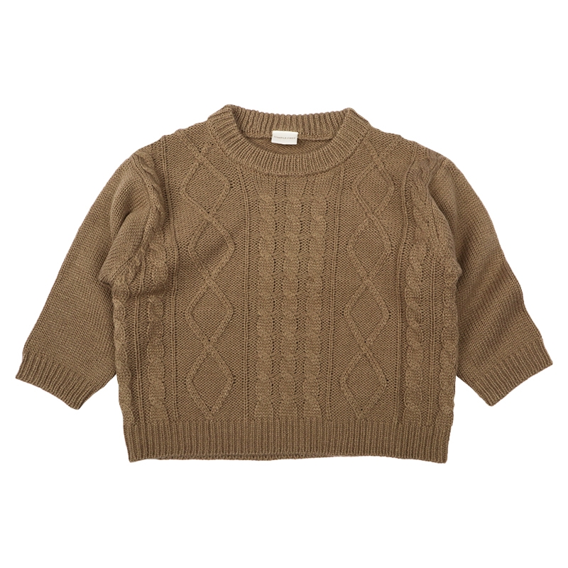 【SALE】[ベビー]ニットトレーナー ケーブル編み ブラウン