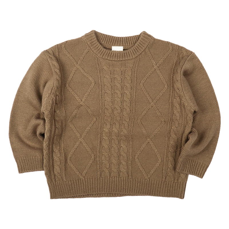 【SALE】[キッズ]ニットトレーナー ケーブル編み ブラウン