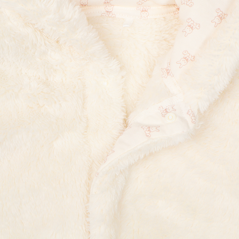 ●素材=[本体]ポリエステル100%[天竺部分]ポリエステル65%綿35% [ニットコール部分]綿62%ポリエステル32%ポリウレタン3% ●原産国=中国 ●サイズ(約・cm)= 70(身丈31・身幅50・裄丈34) 80(身丈33・身幅51・裄丈38)