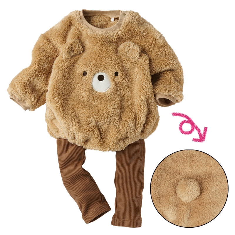 赤ちゃん本舗オリジナルデザインのロンパース+レギンスセットです。 可愛い動物たちの顔刺繍付きのロンパースは、ふっくらとボリューム感のあるシルエットに、 もこもこのボア素材がポイント。セットのパンツは、テレコ素材のやわらかレギンスです。 セットでも別々でも使えるアイテムです。可愛いセットアイテムで冬のお出かけを楽しめます。
