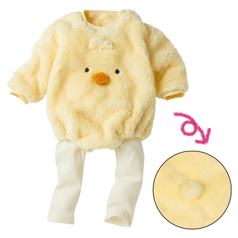 赤ちゃん本舗オリジナルデザインのロンパース+レギンスセットです。 可愛い動物たちの顔刺繍付きのロンパースは、ふっくらとボリューム感のあるシルエットに、 もこもこのボア素材がポイント。セットのパンツは、テレコ素材のやわらかレギンスです。 セットでも別々でも使えるアイテムです。可愛いセットアイテムで冬のお出かけを楽しめます。
