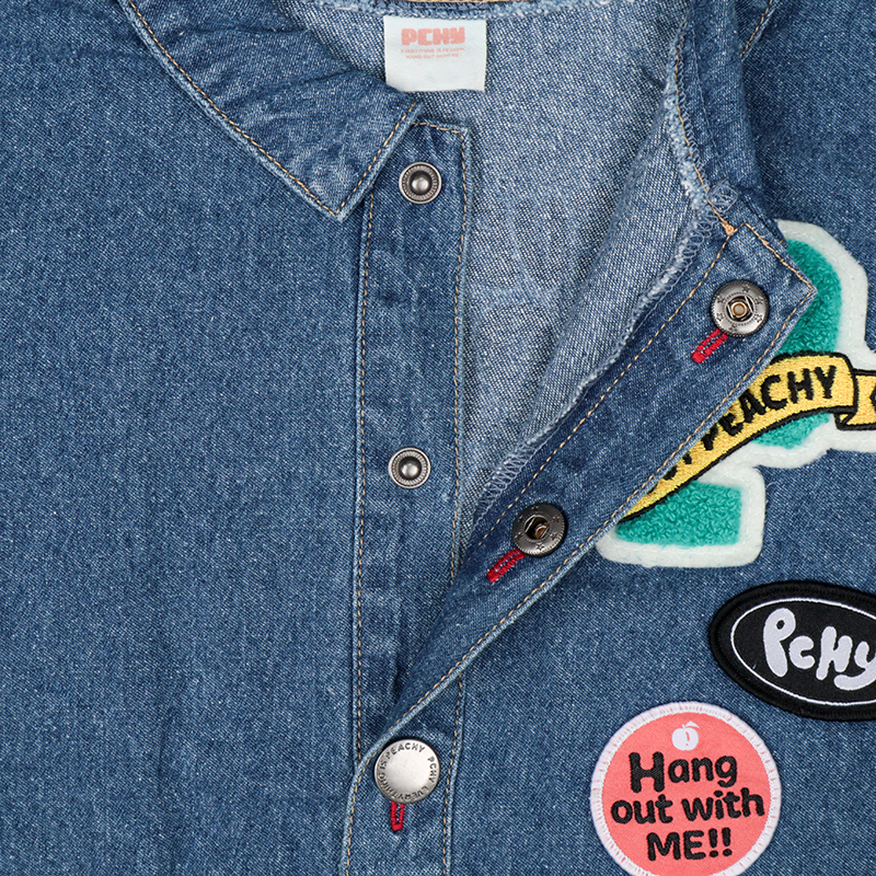 ●素材=[本体]綿100% [合皮パッチ]合成皮革 ●原産国=中国 ●サイズ(約・cm)= 80(身丈61・身幅37・袖丈22.5・股上45・股下16) 90(身丈69・身幅38・袖丈26・股上46・股下23) 100(身丈80・身幅40・袖丈30・股上50・股下30) 110(身丈88・身幅42・袖丈34・股上54・股下34) 120(身丈97・身幅44・袖丈38・股上58・股下39)