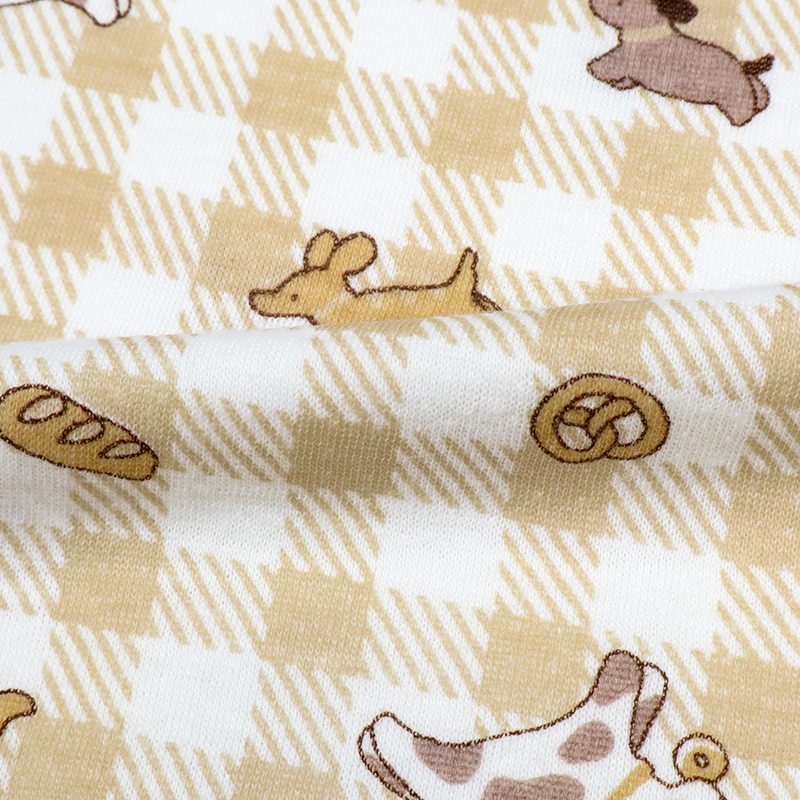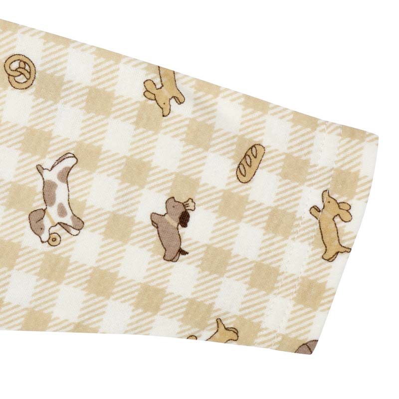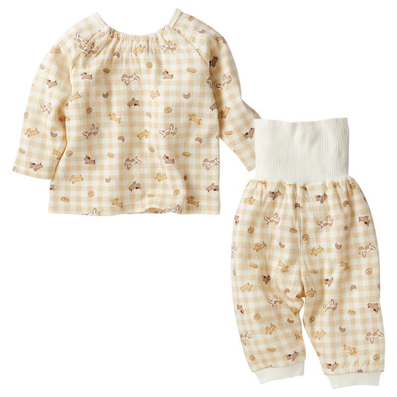 ●素材=本体:綿100%, 附属編地:綿95%、ポリウレタン5% ●サイズ(約・cm)=70(着丈:34・身幅:32・裄丈:33・パンツ丈:31) 80(着丈:37・身幅:33・裄丈:37・パンツ丈:37) 90(着丈:40・身幅:34・裄丈:41・パンツ丈:43) 95(着丈:42・身幅:35・裄丈:43・パンツ丈:46.5) ※パンツ丈は腹巻き除く
