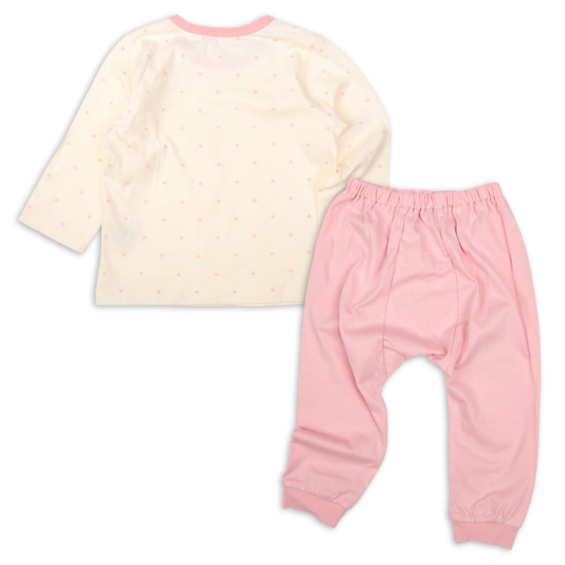 ・素材 本体:綿100% リブ部分:綿95% ポリウレタン5% ・サイズ(約・cm) 上衣70(着丈35、身幅30、袖丈24)、80(着丈37、身幅31、袖丈26)、90(着丈39、身幅32、袖丈28)、95(着丈41、身幅33、袖丈30) パンツ70(股上22、股下23)、80(股上23、股下25)、90(股上23、股下27)、95(股上24、股下30) ・中国製