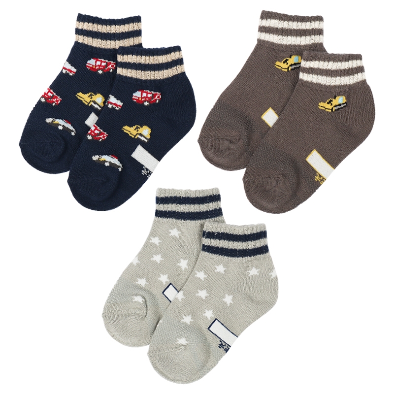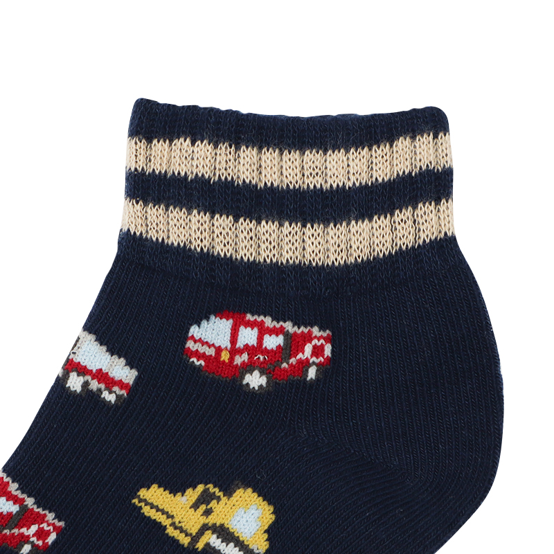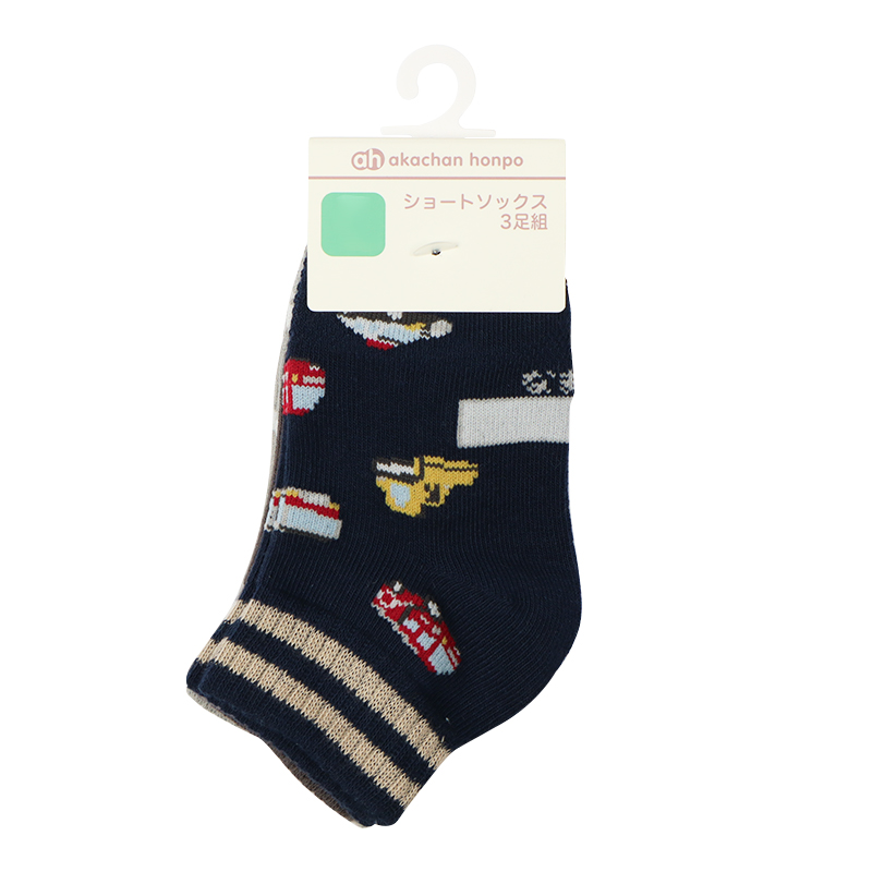 [キッズ]ショートソックス3足組 はたらく車 ネイビー