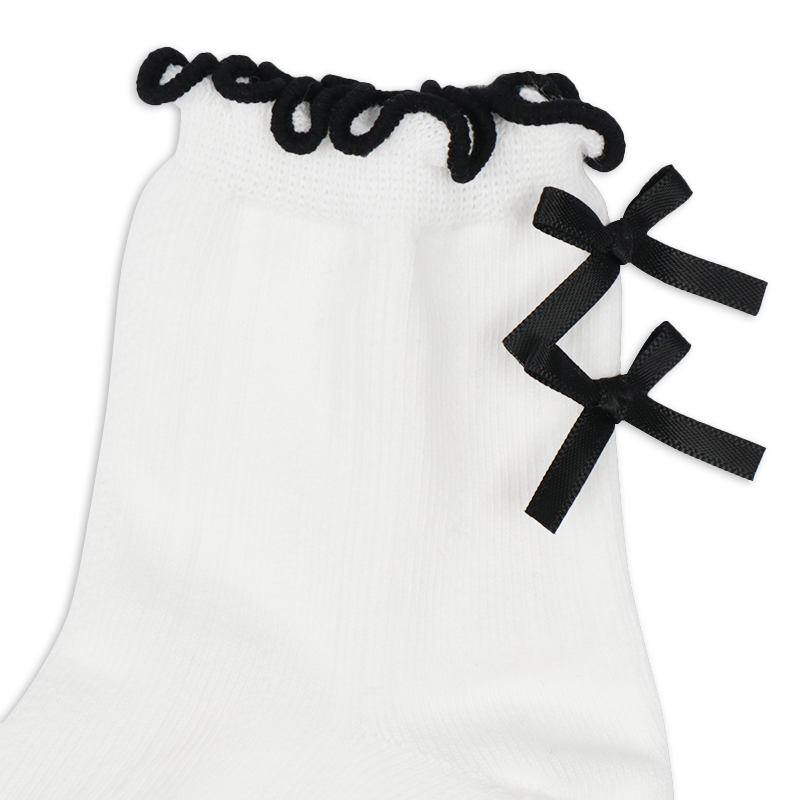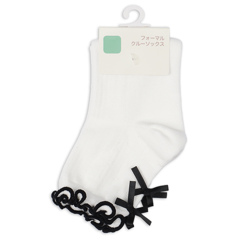 [キッズ]フォーマルクルーソックス リブメロウサテンリボン ホワイト