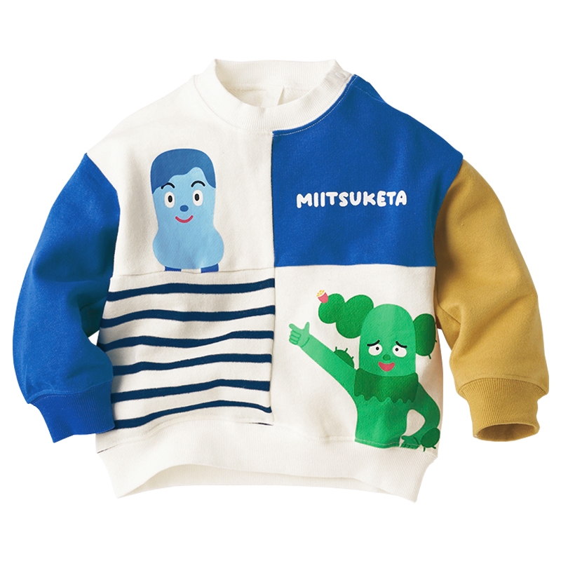 ●素材=[本体]綿100% [リブ部分]綿95% ポリウレタン5% ●原産国=中国 ●サイズ(約・cm)= 80(身丈35・身幅33・袖丈24) 90(身丈37・身幅34・袖丈26) 100(身丈41・身幅36・袖丈30)