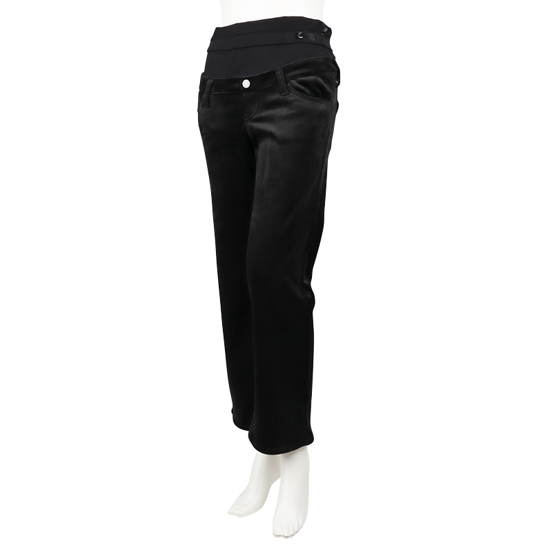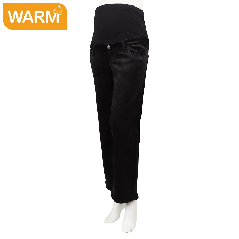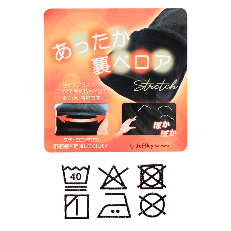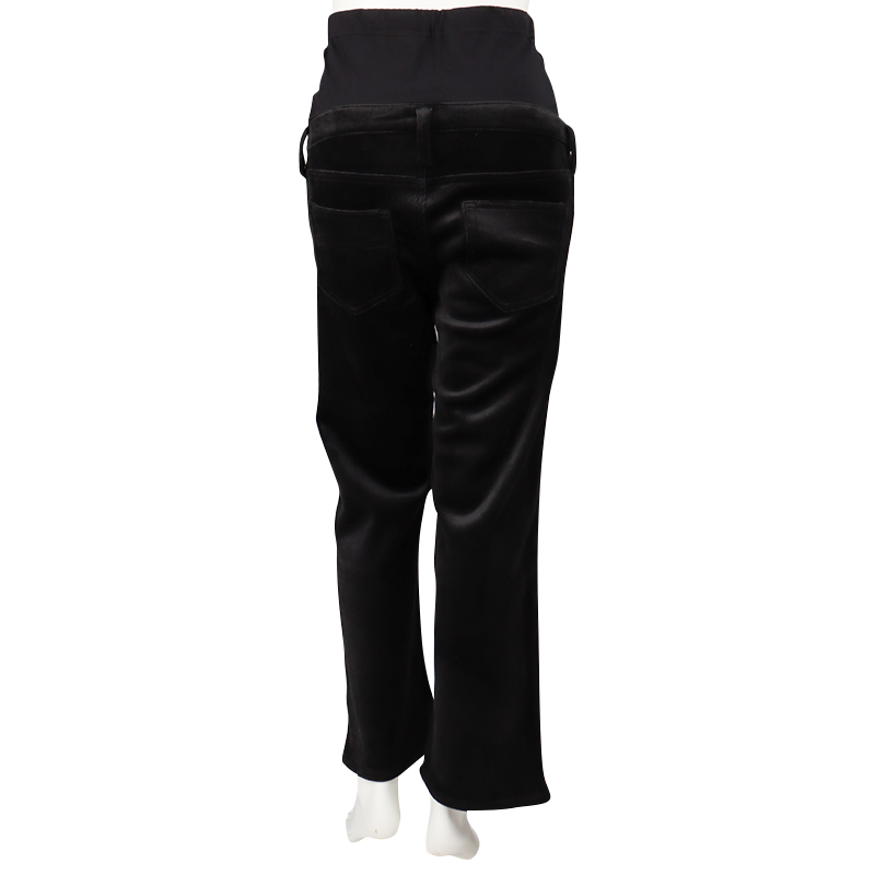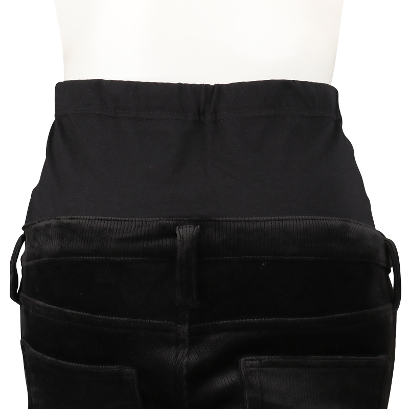 穿いて暖かいニットコール裏ベロアパンツです。 暖かみのある心地よいベロア素材を使用して穿いて暖かで楽チンです。 おなか部分は伸縮性の良いカットソー素材を使用し、お腹周りを締め付けず心地よく穿けます。 おなか部分のカットソー素材を折り返して産後も穿くことができます。