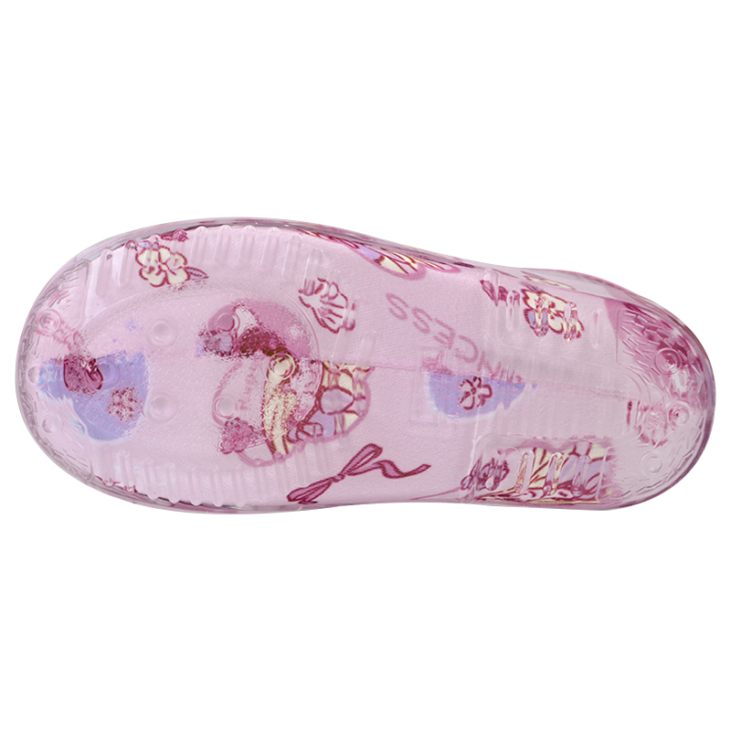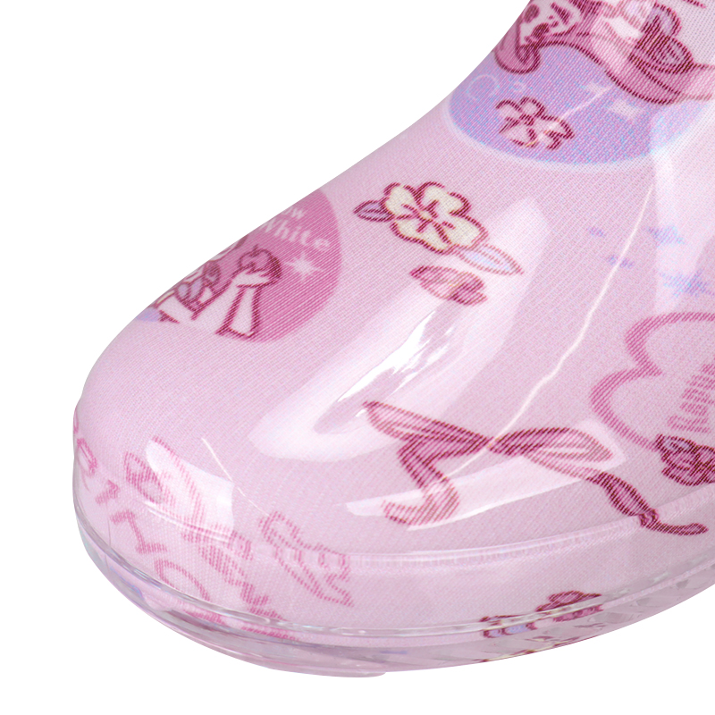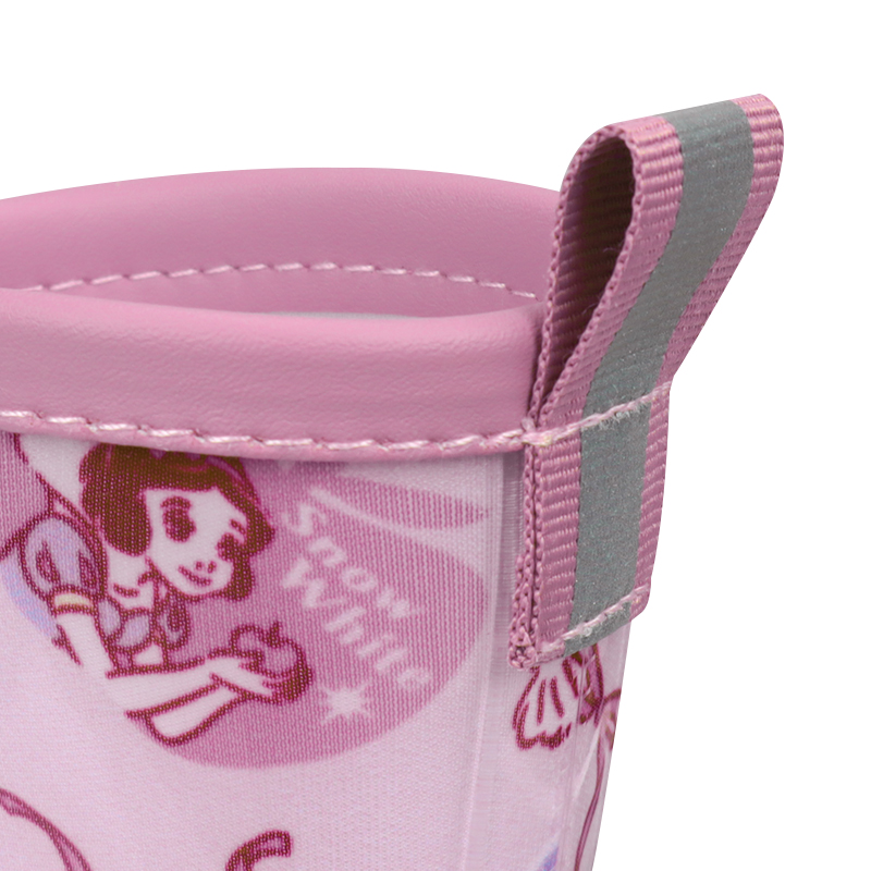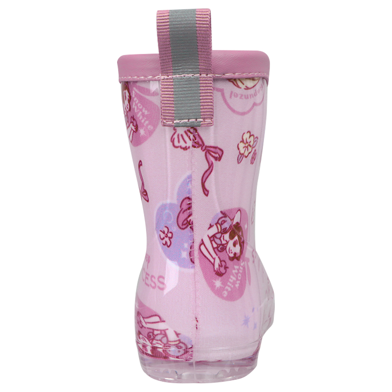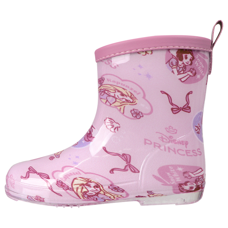 プリンセスの総柄がかわいいレインシューズです。 取り外し可能な中敷きが入っているので、足の大きさに合わせてサイズ調整が出来たり、さっと洗うことも出来て便利です。 その中敷きの左右それぞれに星柄がプリントされているので、子供が自分ではくときも左右の違いがパズル感覚で確かめられます。 また、後ろに反射材がついているので、暗くなりがちな雨の日も車のライト等に反射してくれます。