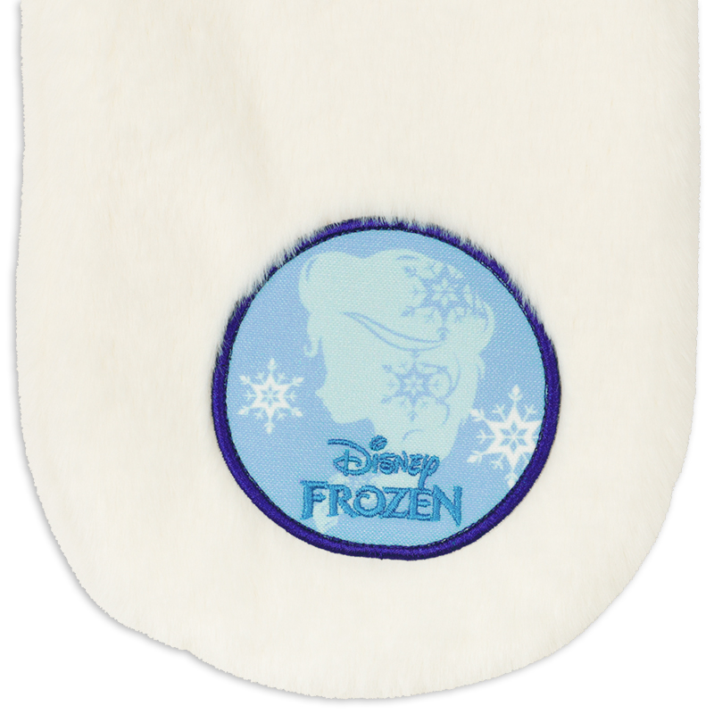 ディズニー差し込みマフラーの登場。差し込み部分があるのでお子様でも簡単に装着できます。エルサ推しのお子様が喜ぶこと間違いなし。防寒具としてもファッショングッズとしてもお役に立てるアイテムです。