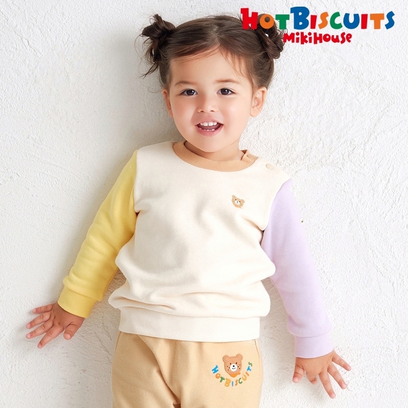 ミキハウス ホットビスケッツのワンポイント裏毛パイルトレーナー。
