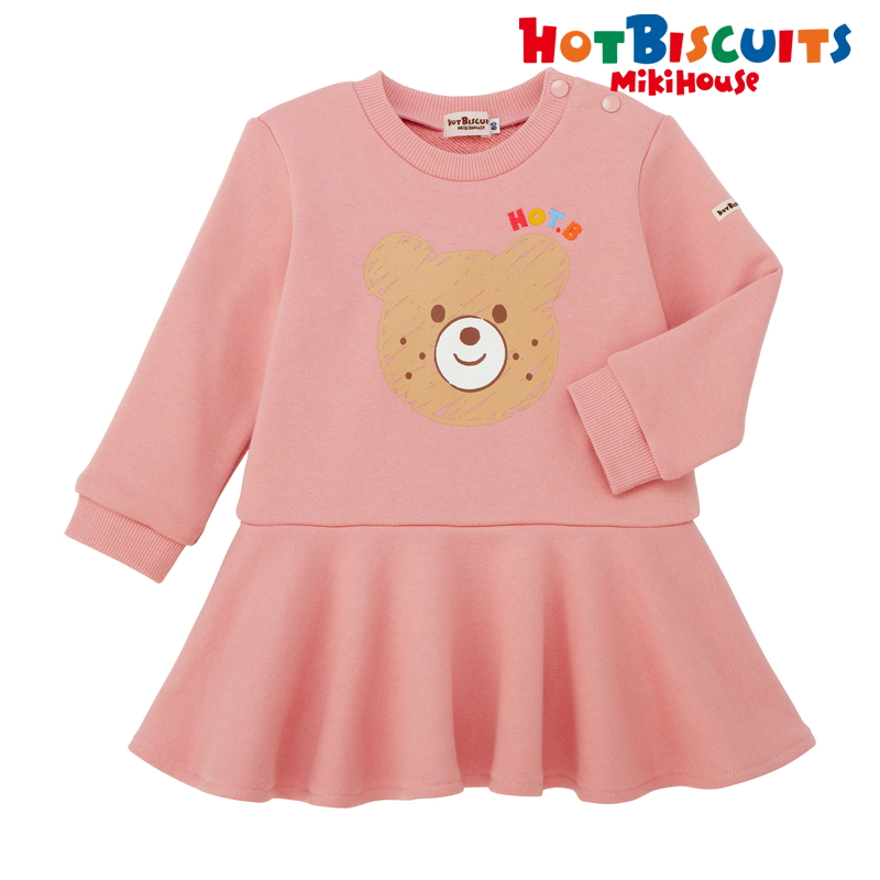 ミキハウス ホットビスケッツのフレアワンピース。 クレヨンタッチ風で描かれたビーンズのデザインが特徴のワンピースです。 ホットビスケッツらしい元気な配色の赤色と、くすみカラーのサーモンピンクの2色展開。 カラーによって雰囲気が違うのでシーンや気分に合わせて色違いで揃えるのもおすすめです◎ スカート部分にしっかりと入ったフレアがかわいいシルエットになるようにこだわりました。 [素材感] あたたかくやわらかな肌触りで吸湿性に優れた裏毛パイル素材 ……………………………………… 生地:綿100% 袖丈:長袖 おすすめ着用シーズン:秋冬 ……………………………………… [スタイリング] おそろいのトレーナーとのリンクコーデもおすすめ。 タイツやレギンスを合わせると冬まで着ていただけます。 おそろいのトレーナーはこちら >73-5601-143 ビッグフェイスプリント裏毛パイル素材トレーナー ●~90cmまで肩開き仕様 《HOT BISCUITS ーホットビスケッツー》 ミキハウスホットビスケッツは、”Good Quality”がキーワードのブランド。 子どもたちには毎日ごきげんに、楽しく健やかに 過ごしてほしいから、 お子さまのための良いものづくりを大切にしています。 男の子も女の子も子どもらしく、おしゃれに可愛く着られるアイテムがいっぱい。 赤ちゃんからキッズまでの子ども服・ベビー服・ベビー用品等を幅広くご用意しています。 春夏秋冬の季節に合わせた、ご出産祝いやプレゼント、ギフトもおすすめです。