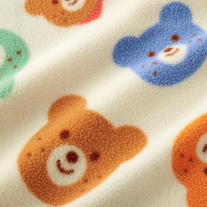 ●素材=フリースプリント、(パイピング)30/-天竺 ●品質=ポリエステル 100%、(パイピング) 綿 100% ●原産国=日本