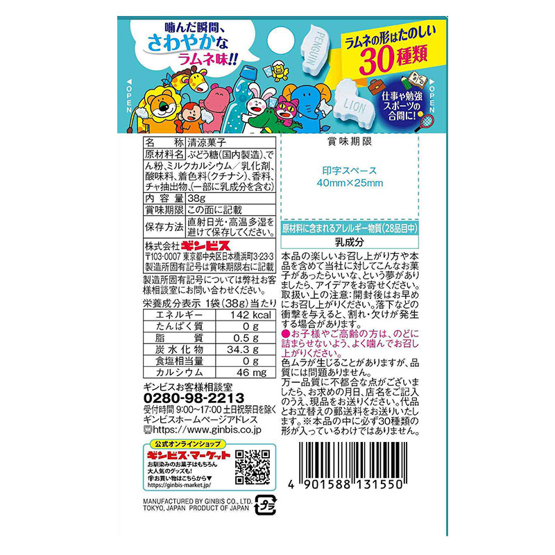 たべっ子どうぶつのビスケットと同じ形のどうぶつ型のラムネです。