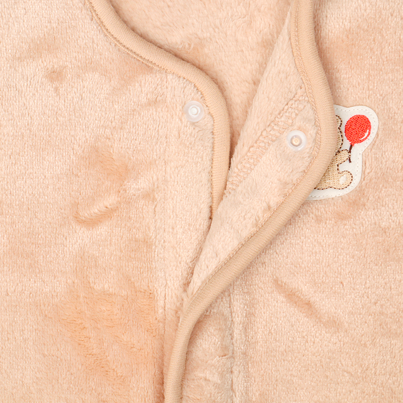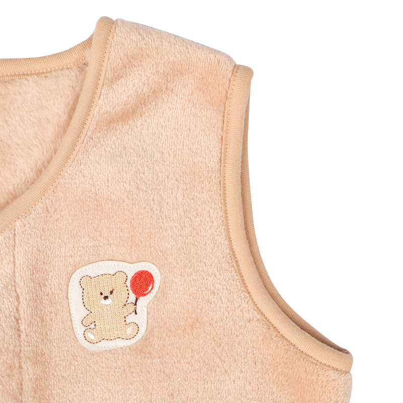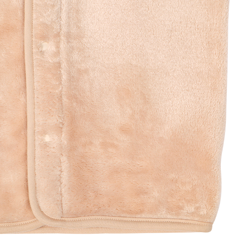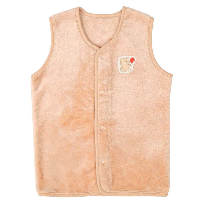 毛足があって、ふわふわモコモコ、ボリューミーな見た目も可愛い冬の暖か素材です。 ソフトな肌触り、軽い着心地も人気の秘密です。 スナップボタンを使用してるのでお着替えも楽々です。 サッと羽織れて、袖がないから動きやすい、着丈が長いのでお尻までかくれて暖かい、 肌寒い日や体温調整用などお風呂上りにパジャマの上に着たり、色々な場面でお使い頂けます。