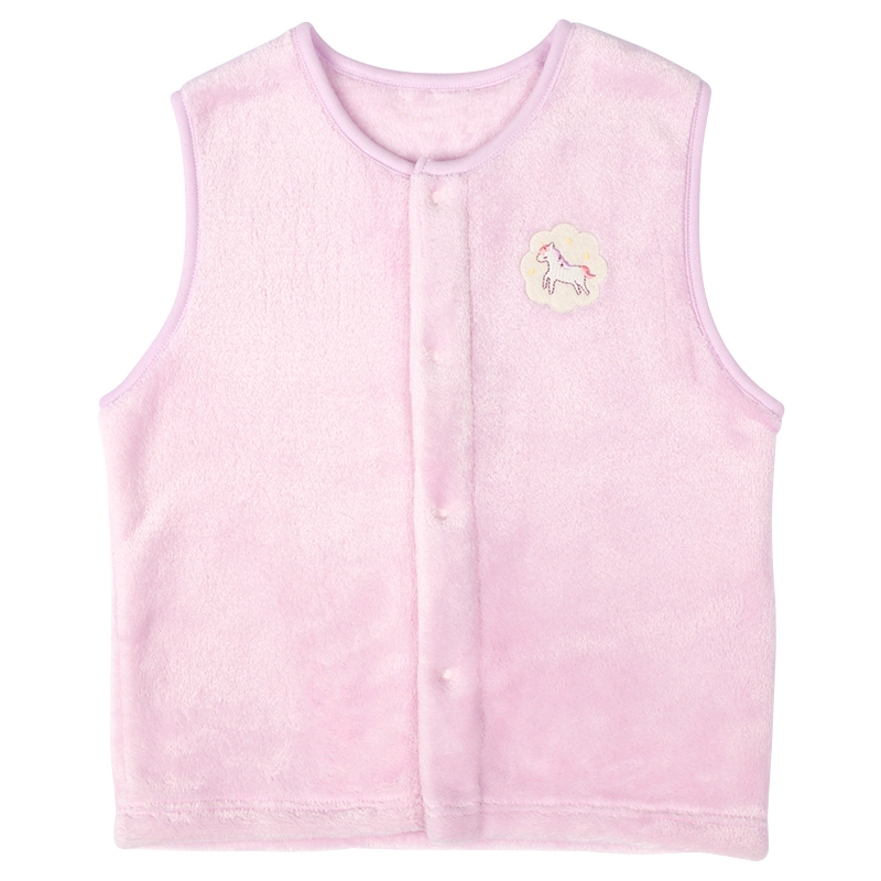 毛足があって、ふわふわモコモコ、ボリューミーな見た目も可愛い冬の暖か素材です。 ソフトな肌触り、軽い着心地も人気の秘密です。 スナップボタンを使用してるのでお着替えも楽々です。 サッと羽織れて、袖がないから動きやすい。 肌寒い日や体温調整用などお風呂上りにパジャマの上に着たり、色々な場面でお使い頂けます。