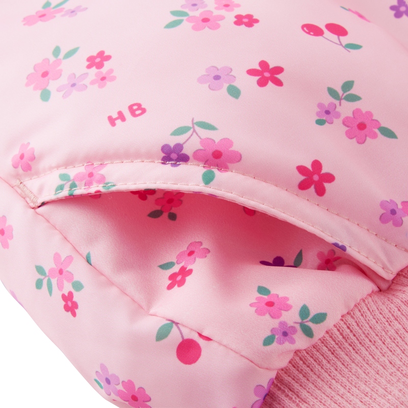 ●素材=(表地・裏地)ポリエステルタフタプリント、(裏地)ボアフリース ●品質=(表地・裏地・中綿) ポリエステル 100%、(リブ部分) 綿 95%、ポリウレタン 5% ●原産国=ベトナム