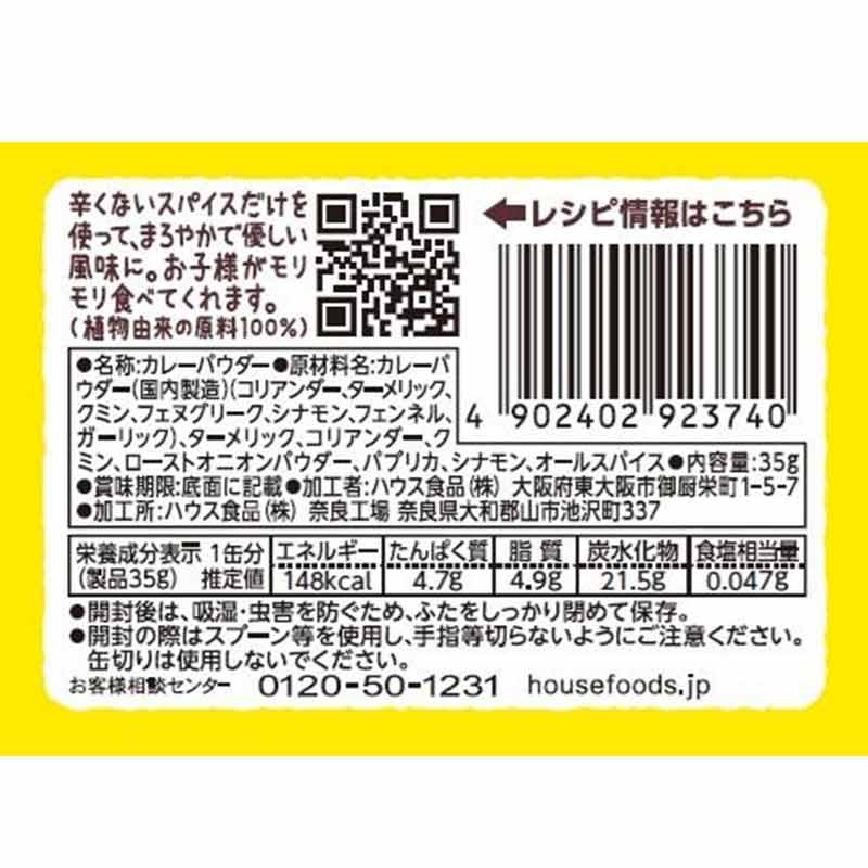 ●カレーパウダー ●原材料名:カレーパウダー(国内製造)(コリアンダー、ターメリック、クミン、フェヌグリーク、シナモン、フェンネル、ガーリック)、ターメリック、コリアンダー、クミン、ローストオニオンパウダー、パプリカ、シナモン、オールスパイス ●内容量:35g ●栄養成分:1缶分(製品35g) 熱量 148kcal たんぱく質 4.7g 脂質 4.9g 炭水化物 21.5g 食塩相当量 0.047g