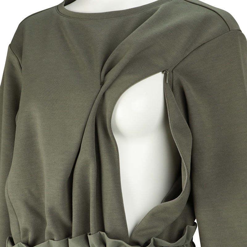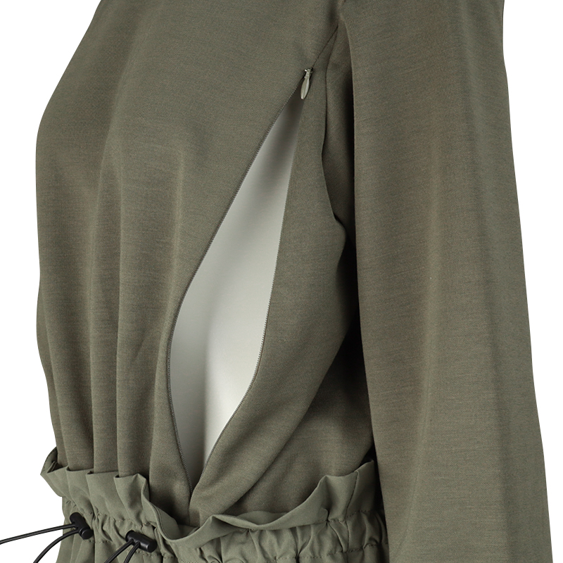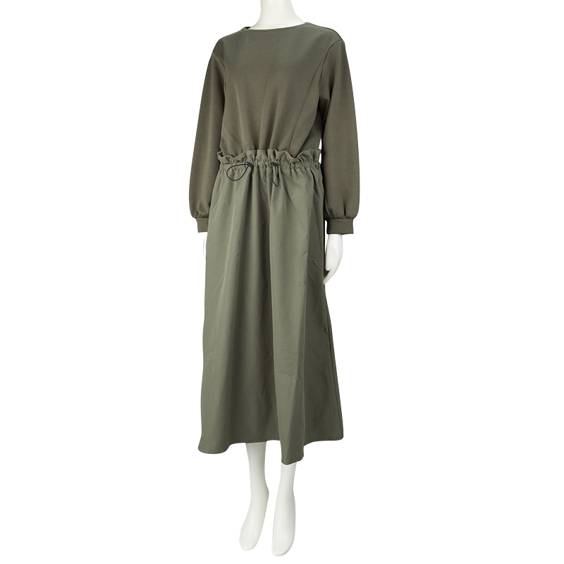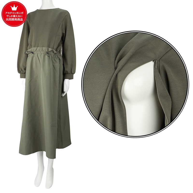 【SALE】[授乳口付き]長袖ドッキングワンピース カーキ