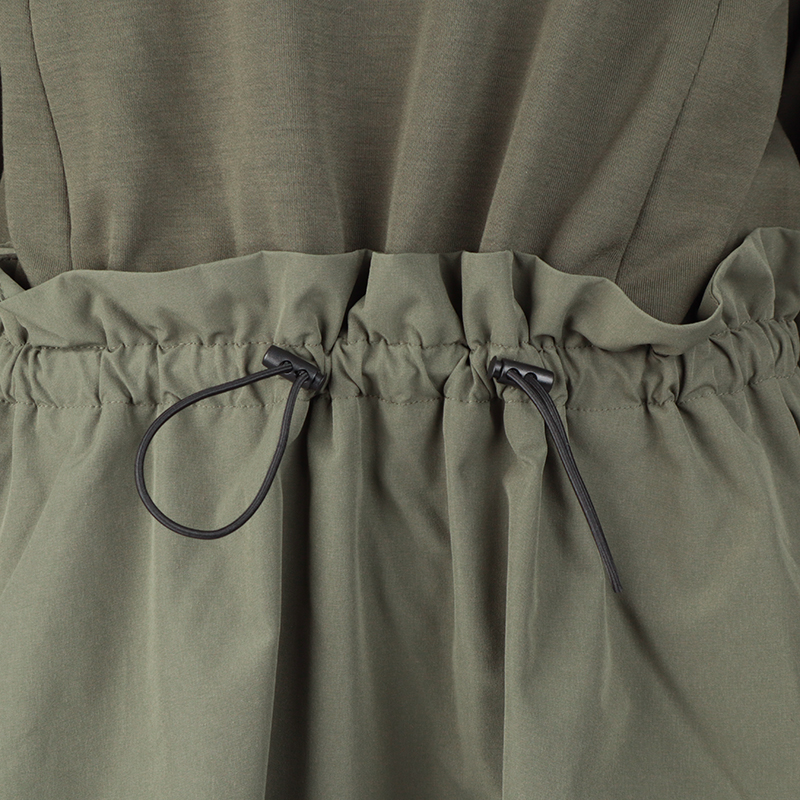 デザインポイントのウエストのドロストは、体型変化に応じてゆるめたり、しめたりが可能なのでマタニティー期にも、授乳期、卒乳後でも着用して頂ける重宝アイテムです。