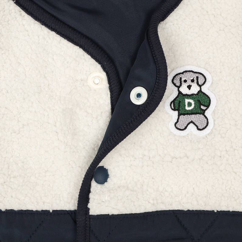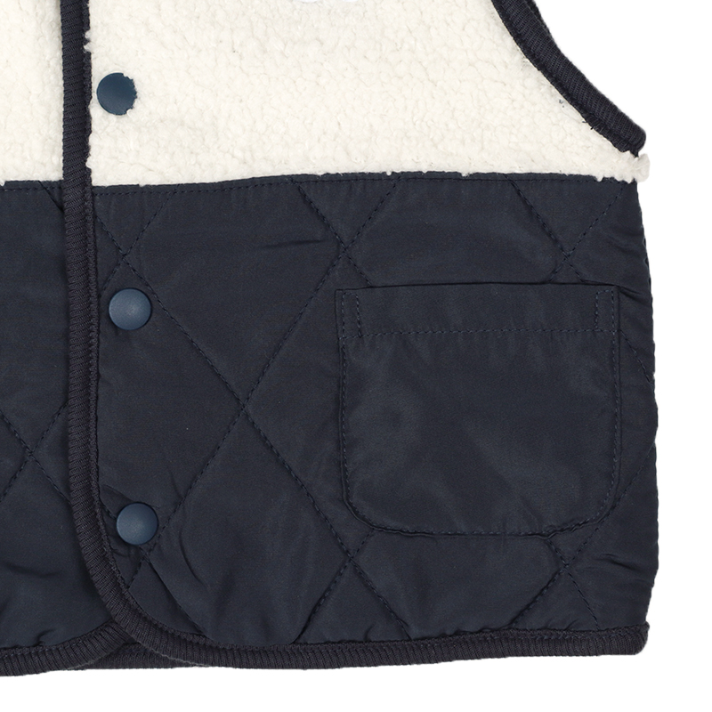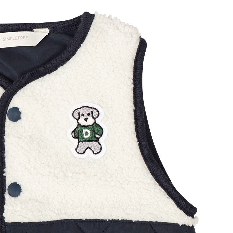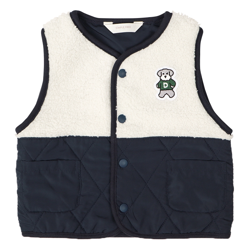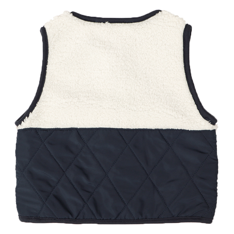 毛足の短いボア生地を使ったベストです。 中綿を入れない表地と裏地の仕立てなので軽く、肌寒い時の体温調整にも最適です。 シンプルなデザインと、カラーなので、コーディネイトを選びません。 洗濯機で洗えます。名前が書けるお名前タグ付きです。