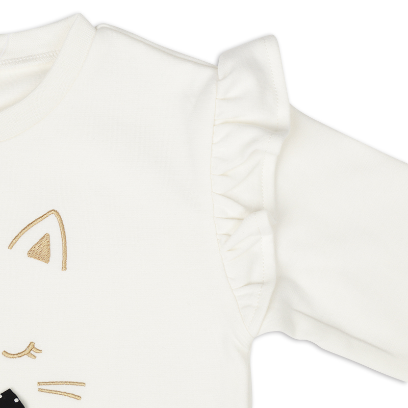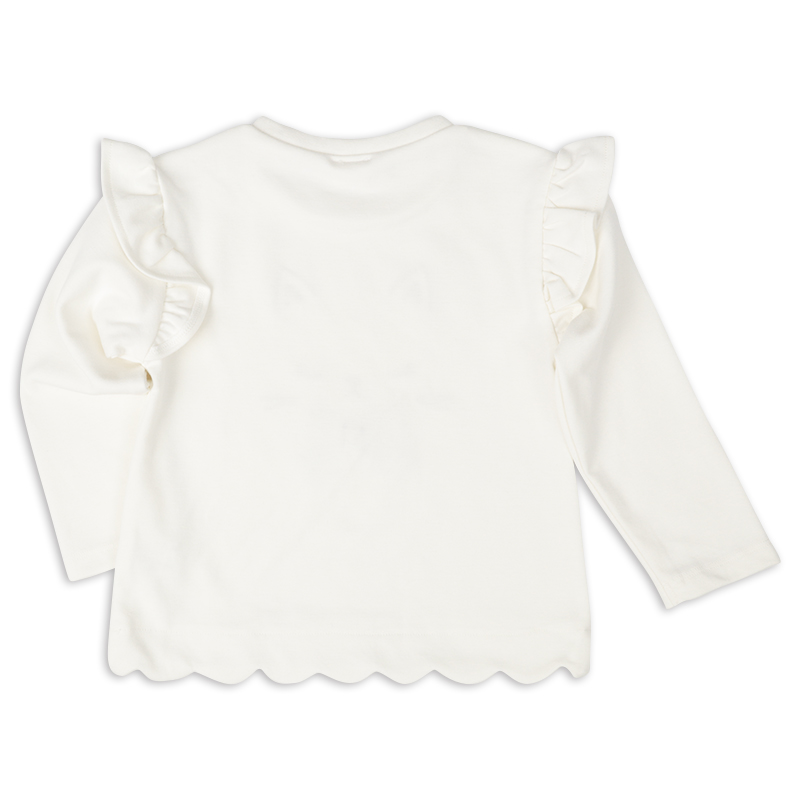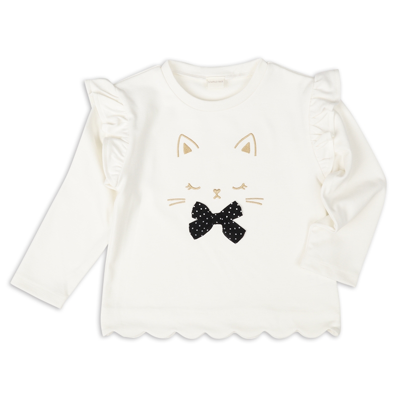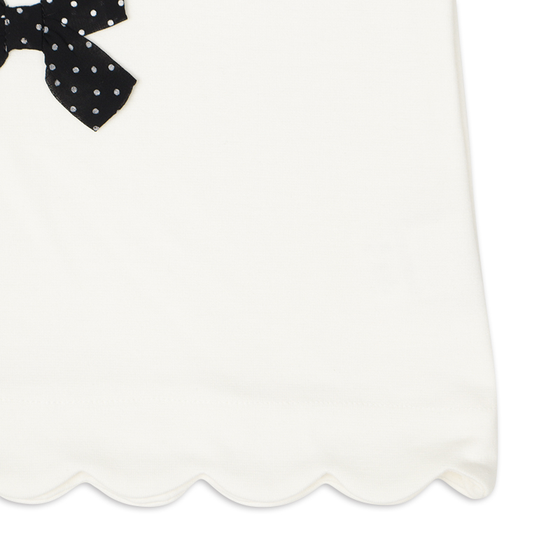 組成表示 ●本体 ポリエステル64% 綿36% ●リブ部分 ポリエステル63% 綿34% ポリウレタン3% ●スカラップ裏 ポリエステル65% 綿35% 【100cm】着丈39:胸囲62:肩幅28:袖丈32 【110cm】着丈42:胸囲66:肩幅30:袖丈36.5 【120cm】着丈45:胸囲70:肩幅32:袖丈41