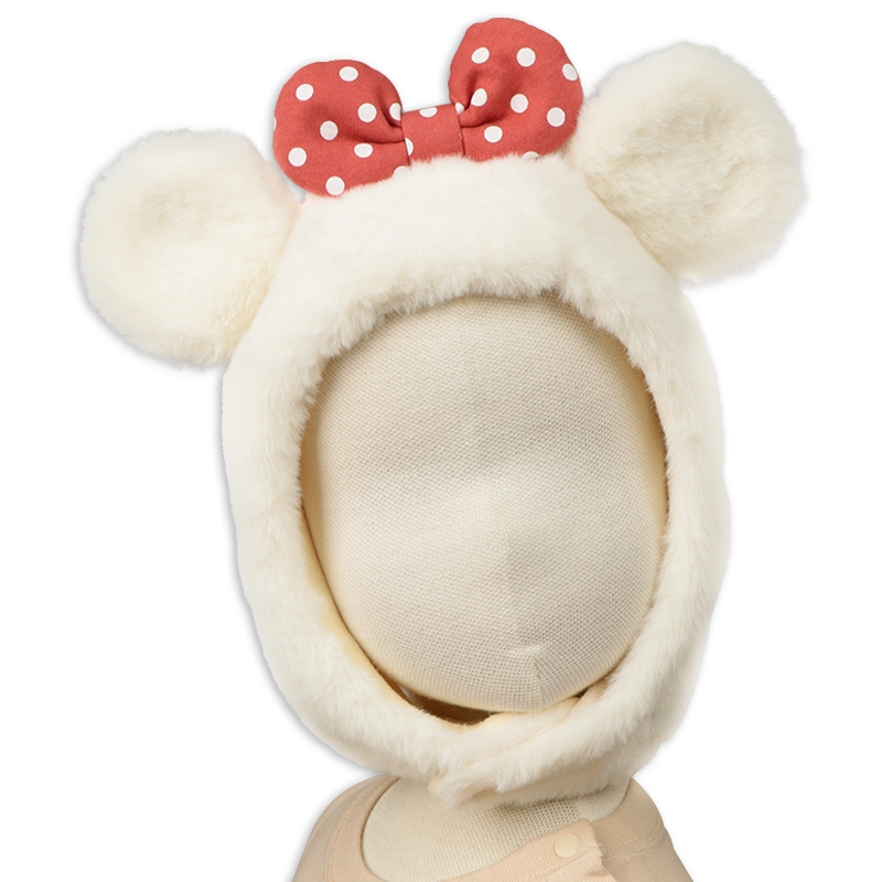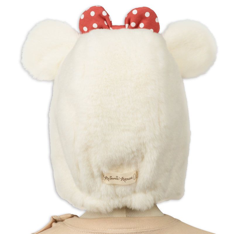 ふわふわボアが映える、ミニーマウスがモチーフのアイテムです。 被るだけでキュートな姿に変身できます。 フード仕様なので、お子様の耳元や顔まわりをすっぽりと暖かく包みます。 着脱はアゴ部分にある面ファスナーにより、簡単に行うことができます。