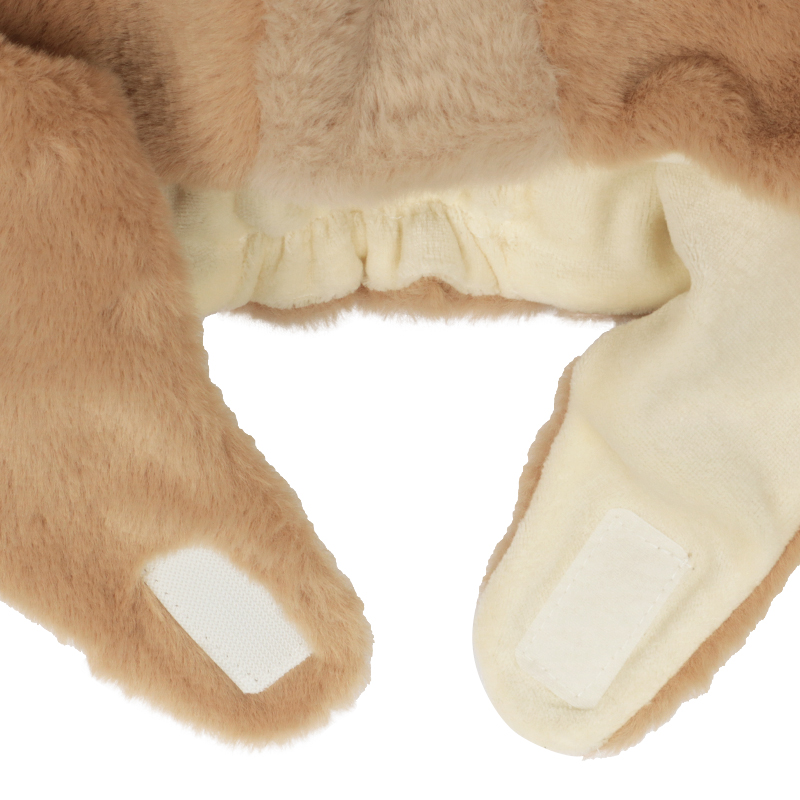 ふわふわボアが映える、「わんわん物語」のレディがモチーフのアイテムです。 被るだけでキュートな姿に変身できます。 フード仕様なので、お子様の耳元や顔まわりをすっぽりと暖かく包みます。 着脱はアゴ部分にある面ファスナーにより、簡単に行うことができます。