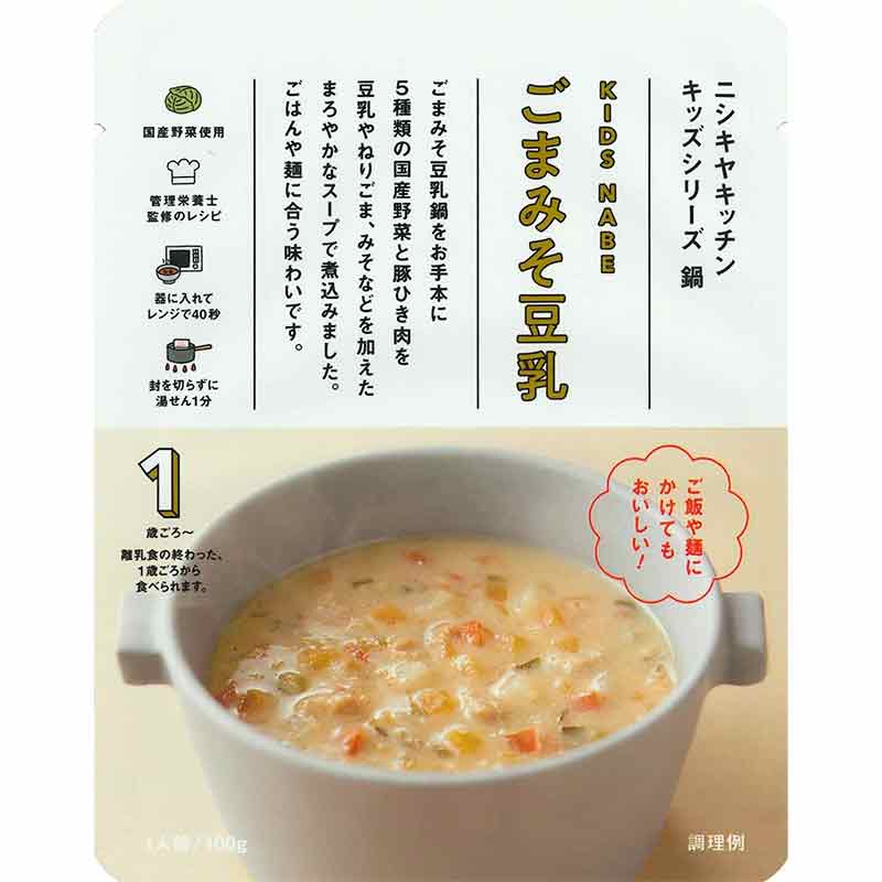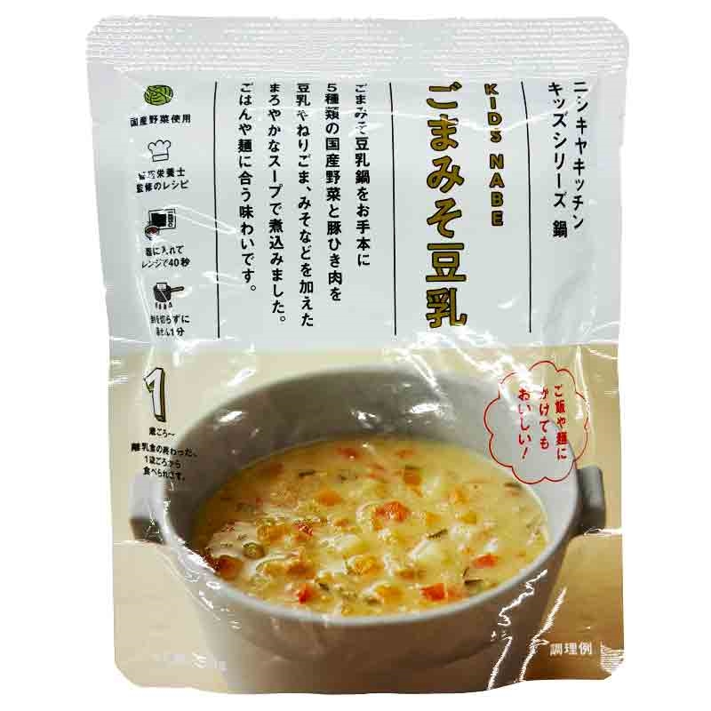 ●1歳ごろ~ 離乳食の終わった、1歳ごろから食べられます。 ●内容量:100g ●原材料名:野菜(キャベツ(国産)、にんじん、じゃがいも、赤パプリカ、にら、にんにく)、豚肉、チキンブイヨン、豆乳、こんぶだし、砂糖、みそ、ねりごま、ごま油、でん粉、おろししょうが、食塩、なたね油、しょうゆ、(一部に小麦・ごま・大豆・鶏肉・豚肉を含む)