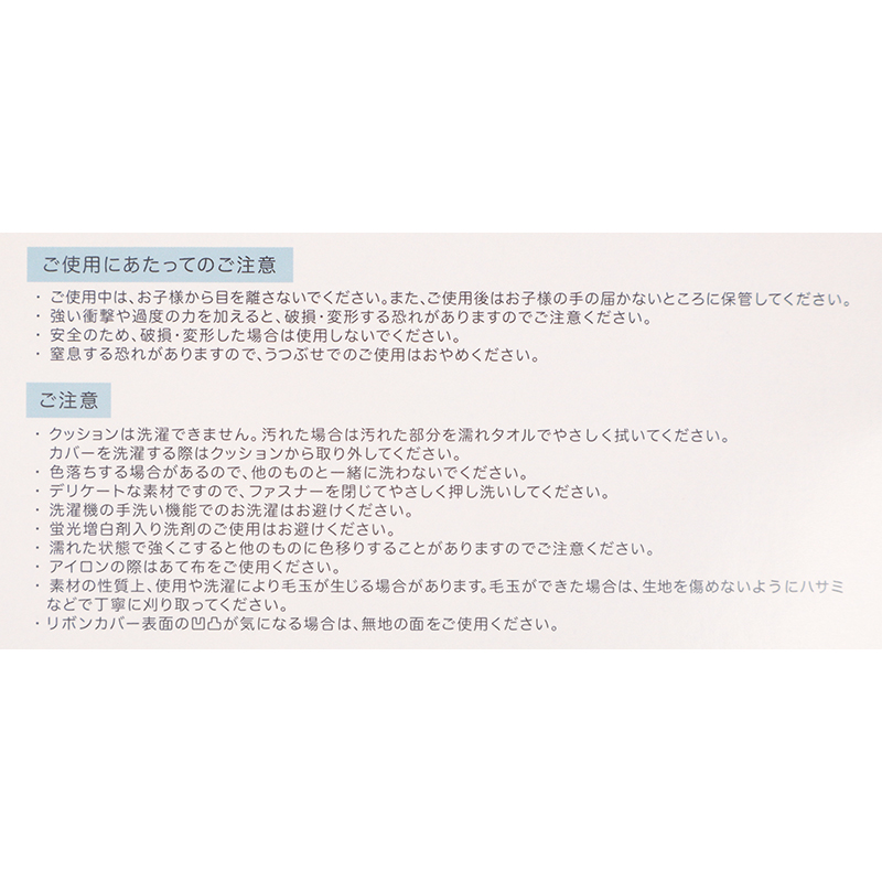 ・窒息する恐れがありますので、うつぶせでのご使用はおやめください。