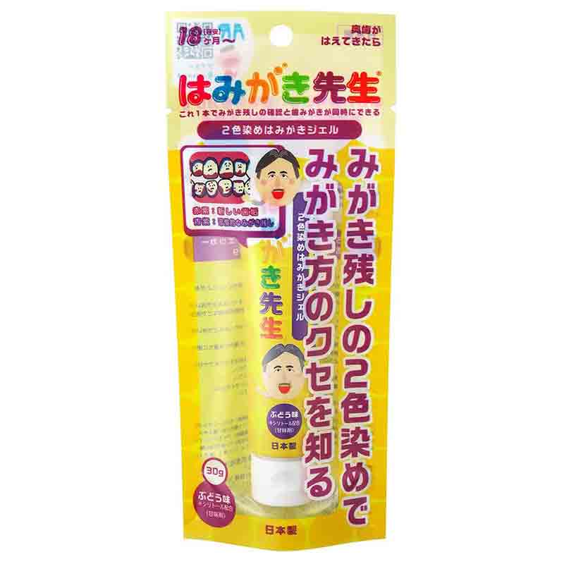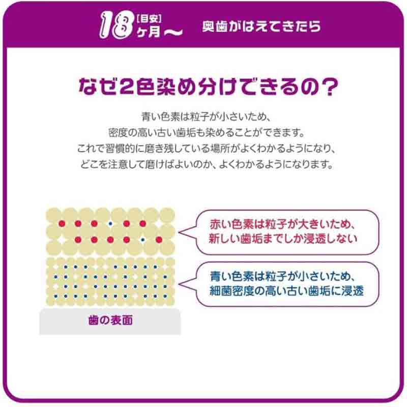 ●対象:目安18ヵ月~ 奥歯がはえてきたら ●内容量:30g ●ぶどう味 ●成分:水(溶剤)、ソルビトール・グリセリン(湿潤剤)、シリカ(清掃剤)、セルロースガム(粘結剤)、プロパンジオール(溶剤)、キシリトール(甘味剤)、ブドウ種子/皮/茎エキス・乳酸桿菌溶解質・没食子酸エピガロカテキン・チャ葉エキス(湿潤剤)、デキストリン(分散剤)、キサンタンガム(増粘剤)、エタノール(溶剤)、PEG-60水添ヒマシ油(可溶化剤)、フェノキシエタノール(防腐剤)、香料(着香剤)、赤104(1)・青1(着色剤)