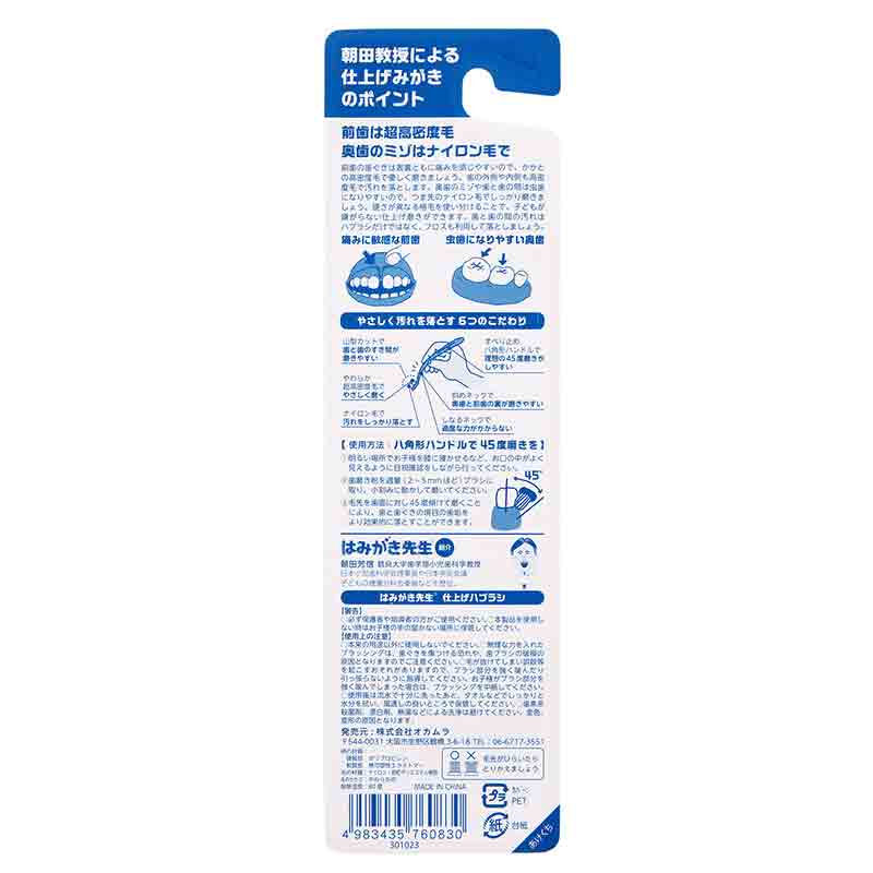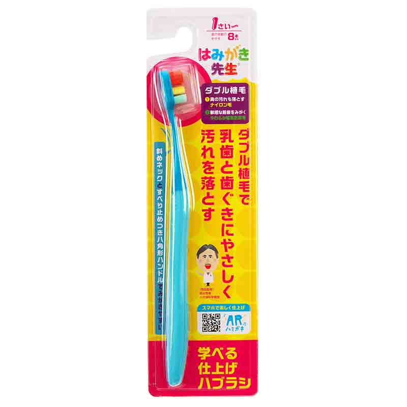 ●奥歯の汚れを落とすナイロン毛、敏感な前歯をみがくやわらか超高密度毛のダブル植毛で乳歯と歯ぐきにやさしく汚れを落とす ●手にしっかりフィットするすべり止めつき八角形ハンドル ●スマホで楽しく仕上げみがきができるAR