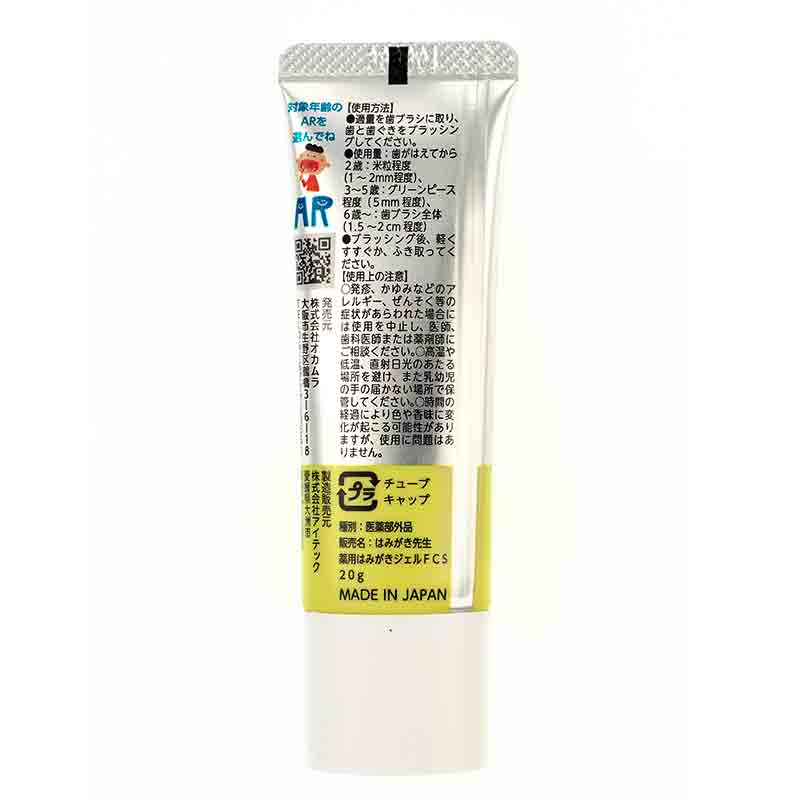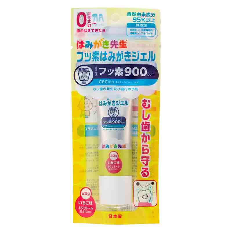 ●対象:目安0才~ 歯がはえてきたら ●内容量:20g ●いちご味 ●成分:ソルビット液・濃グリセリン・ヒアルロン酸ナトリウム(2)・ユキノシタエキス・シャクヤクエキス・海藻エキス(4)(湿潤剤)、精製水・1,3- ブチレングリコール・1,2- ペンタンジオール(溶剤)、キシリット(甘味剤)、カルボキシメチルセルロースナトリウム・キサンタンガム(増粘剤)、無水ケイ酸(清掃剤)、香料(着香剤)、安息香酸ナトリウム(防腐剤)、フッ化ナトリウム・塩化セチルピリジニウム(有効成分)