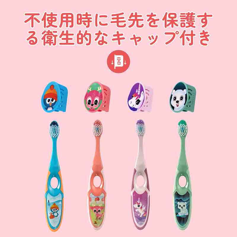 ※色/絵柄はお選びいただけません。 複数本ご購入の場合、色/絵柄が重複することがございます。予めご了承ください。 ステップ2は、お子様の小さな乳歯を磨くために作られた歯ブラシです。 お子様の歯と歯茎をやさしく磨くためのとても柔らかなブラシです。 ブラシ先端の毛が長いため、奥歯までしっかり磨けます。 デュアルグリップを採用し、中心部に丸みを持たせることで、仕上げ磨きの大人も握りやすく、 お子様が自分で歯ブラシを持ちやすいデザインに仕上げています。