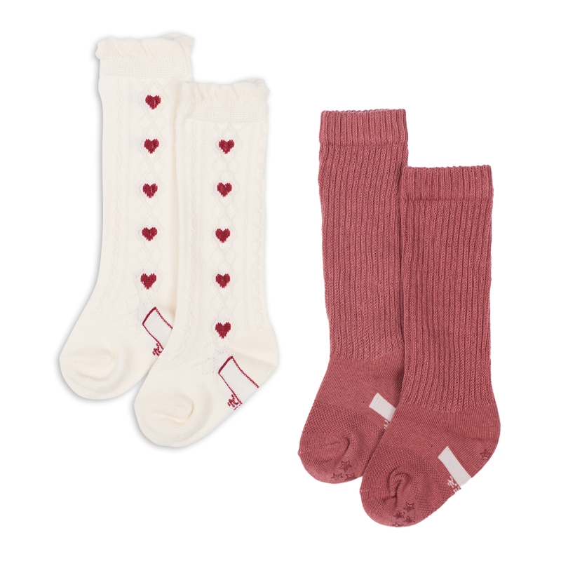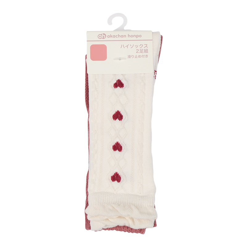 [ベビー]ハイソックス 2足組 ハートフロート オフホワイト