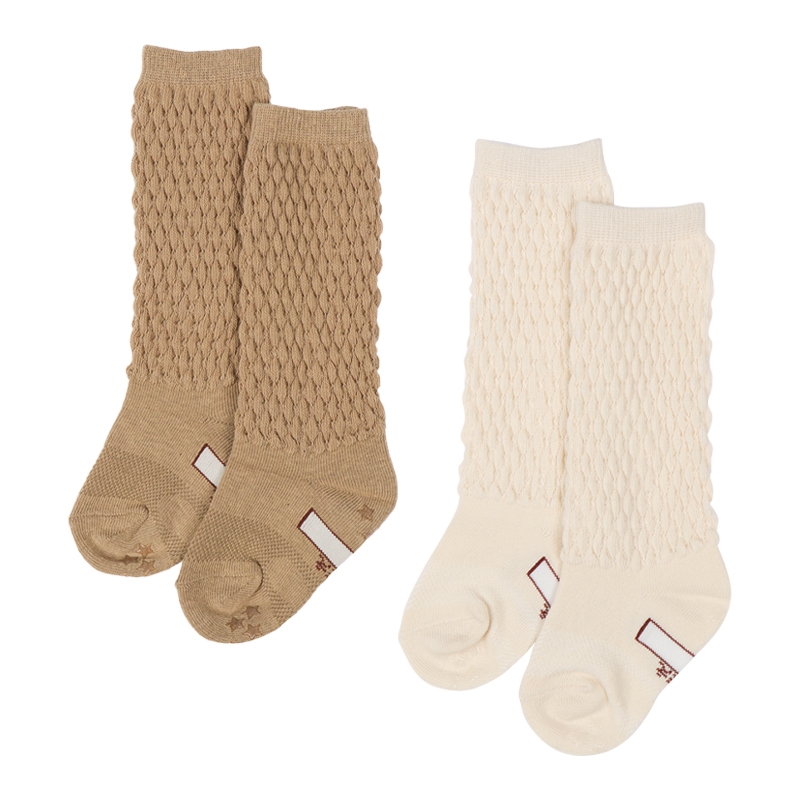 おもて糸コットン100%素材を使用したお肌に優しいソックスです。 サイズは、のびのびサイズ仕様を使用しており、成長の早いお子様にも適しています。 シンプルでかわいいデザインの2足組ソックスが税込価格638円です。