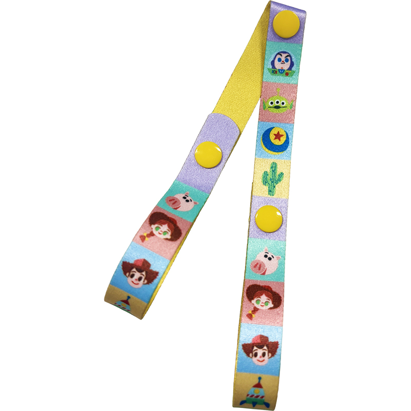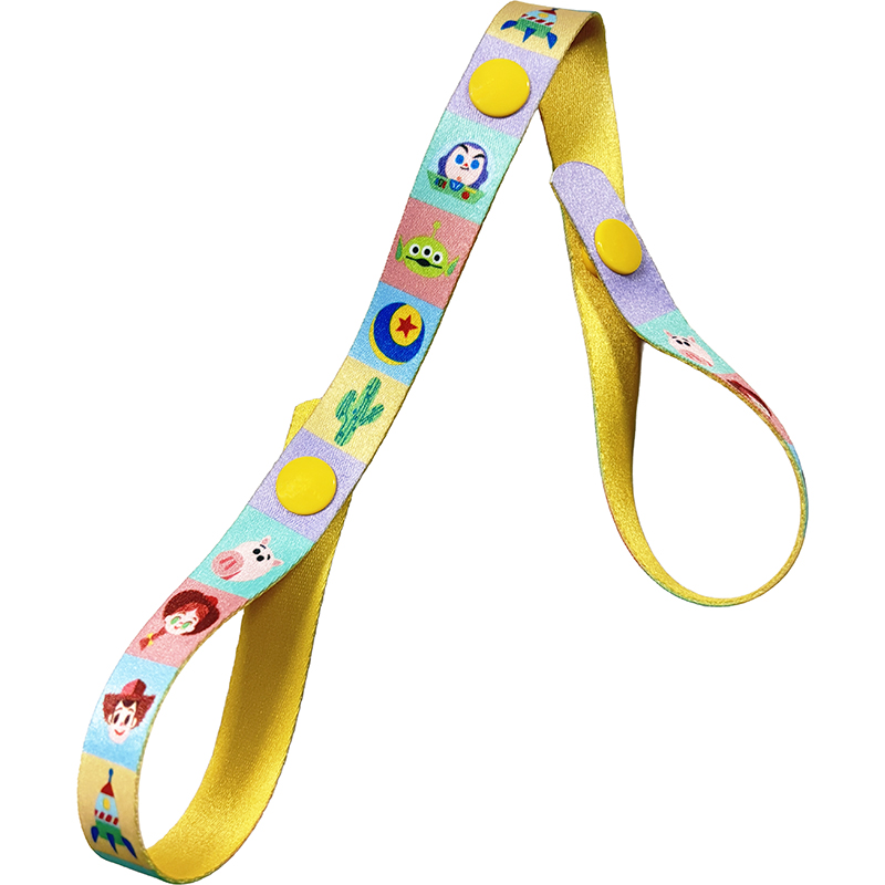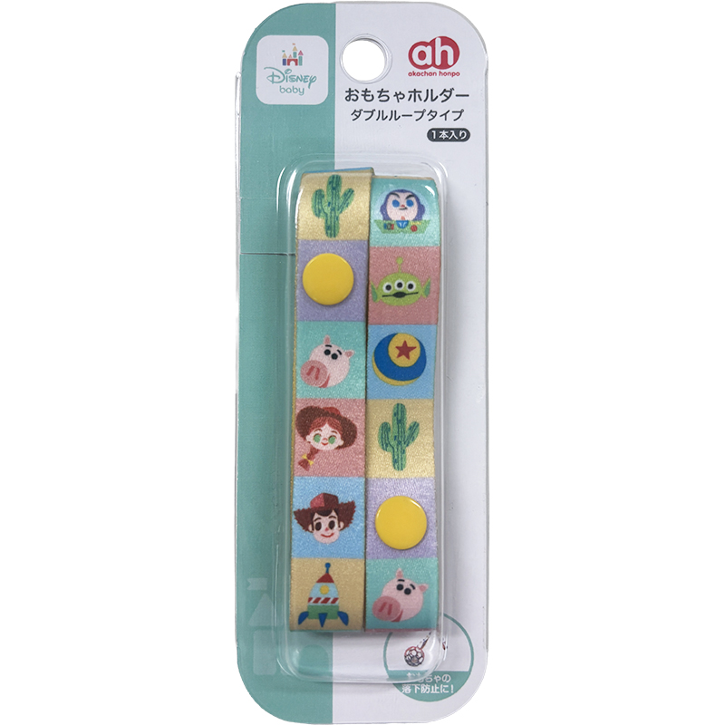 お気に入りのおもちゃの落下防止に! 大切なおもちゃを投げてなくさないようにするホルダーです。 スナップボタンでベビーカーや抱っこ紐などに簡単に取り付けられます。 かわいいトイ・ストーリー柄。