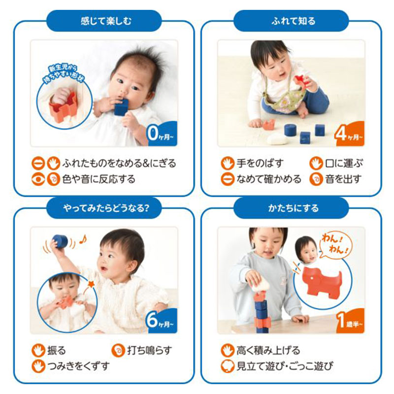 ●対象年齢:0ヵ月~ ●電池:なし ●付属品: ・シャラシャラおにぎり ・どうぶつパーツ(やわらか素材)×2体 ・つみき×3ピース(円柱×1ピース/立方体×2ピース) ●パッケージサイズ(約・mm):幅190×奥行40×高さ190