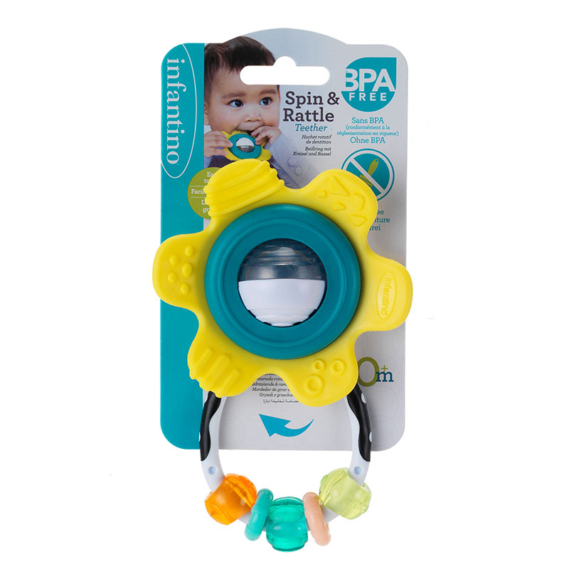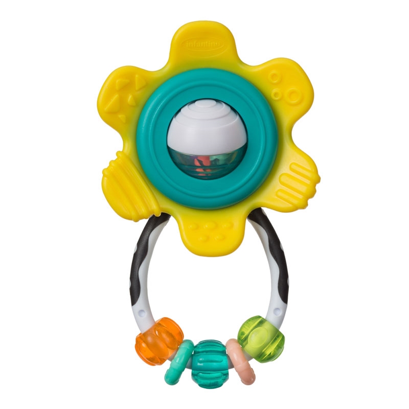 花びらは歯が生えるときの歯茎をマッサージする歯がためとして最適。 花びらと真ん中のボールはクルクルまわるので視覚的にも楽しめるます。 はっきりとした黄色や差し色の黒が視力が低い赤ちゃんでも認識しやすいデザインです。