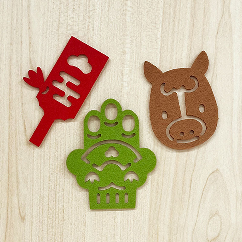 ●セット内容:抜き型モチーフ×10個 ●本体材質:ポリエステル100% ●お取り扱い上のご注意(※お読みください。) ・この商品は玩具ではありません。お子さまに与えないでください。 ・お子さまが口などに入れて遊ばないようにご注意ください。誤飲や窒息などの危険があります。 ・お子さまの手の届かない場所でご使用・保管してください。 ・ご使用中、保護者の方は必ず目を離さないでください。 ・この商品は洗えません。汚れた場合は汚れた部分を濡れタオルで優しく拭いてください。 ・濡れた状態で強くこすると他のものに色移りする場合がありますのでご注意ください。 ・万が一、商品が破損した場合は、直ちにご使用をおやめください。 ※商品の仕様は、改良・改善のため予告なく変更する場合がございますので、あらかじめご了承ください。